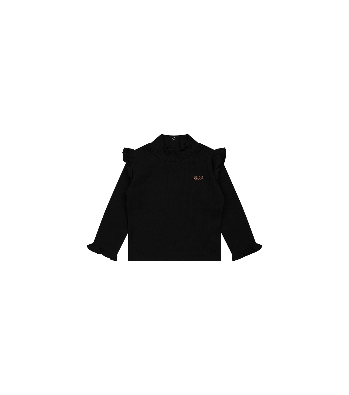 Omschrijving | Co/ly rib, turtleneck, ruche schouder |