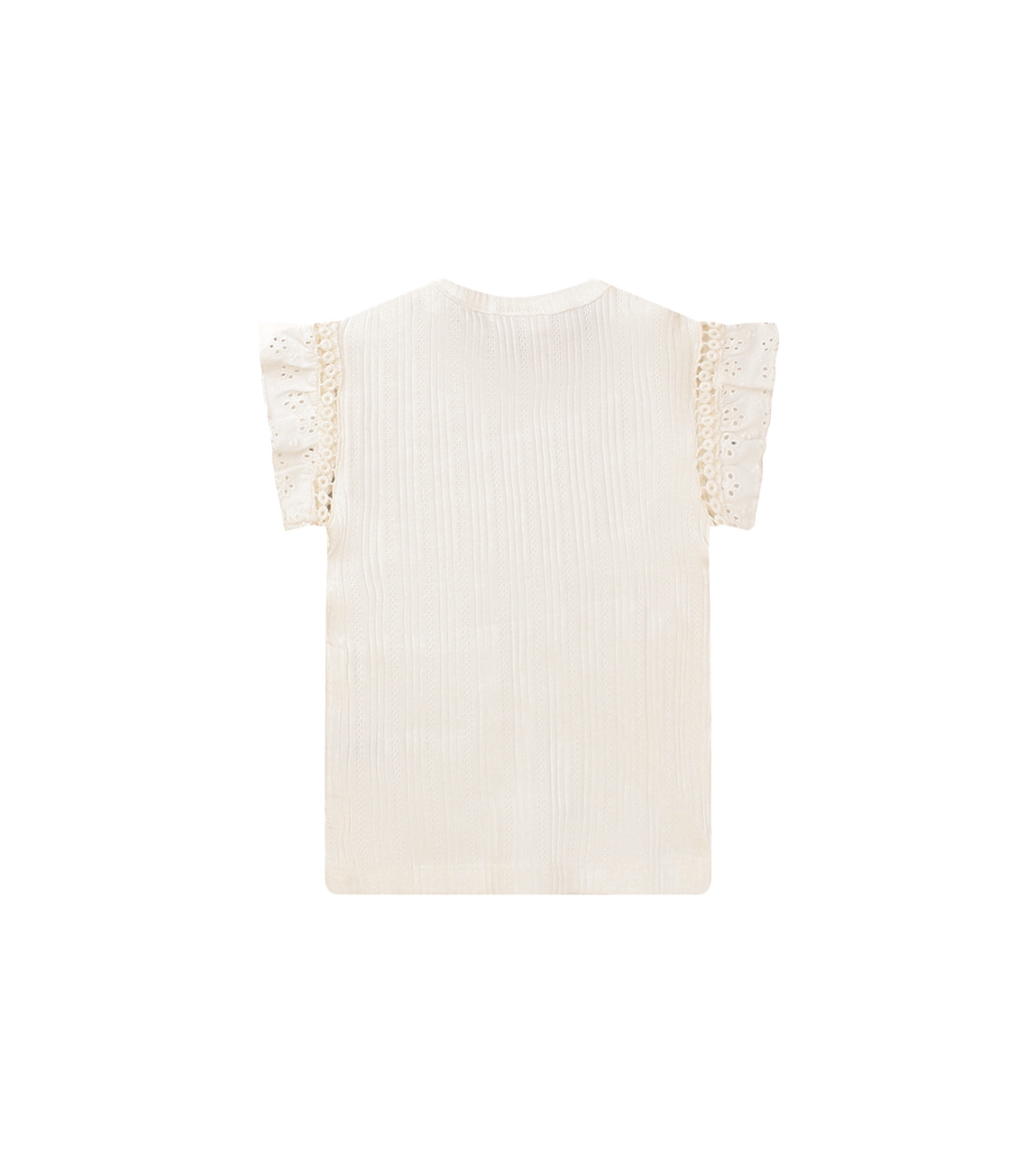 Omschrijving | Co ribajour, broderie mouw, lace tape |
