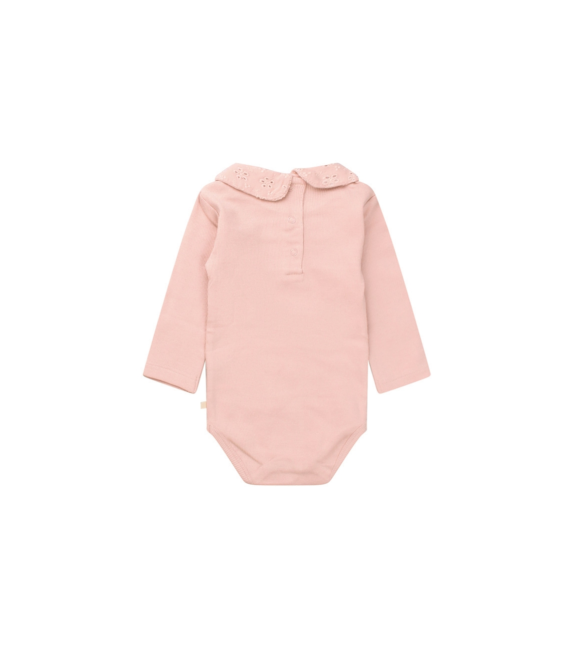 Omschrijving | Bio co/ly, rib, broderie kraagje |