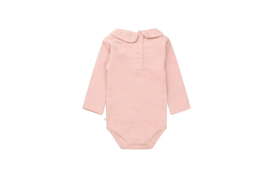 Omschrijving Bio co/ly, rib, broderie kraagje
