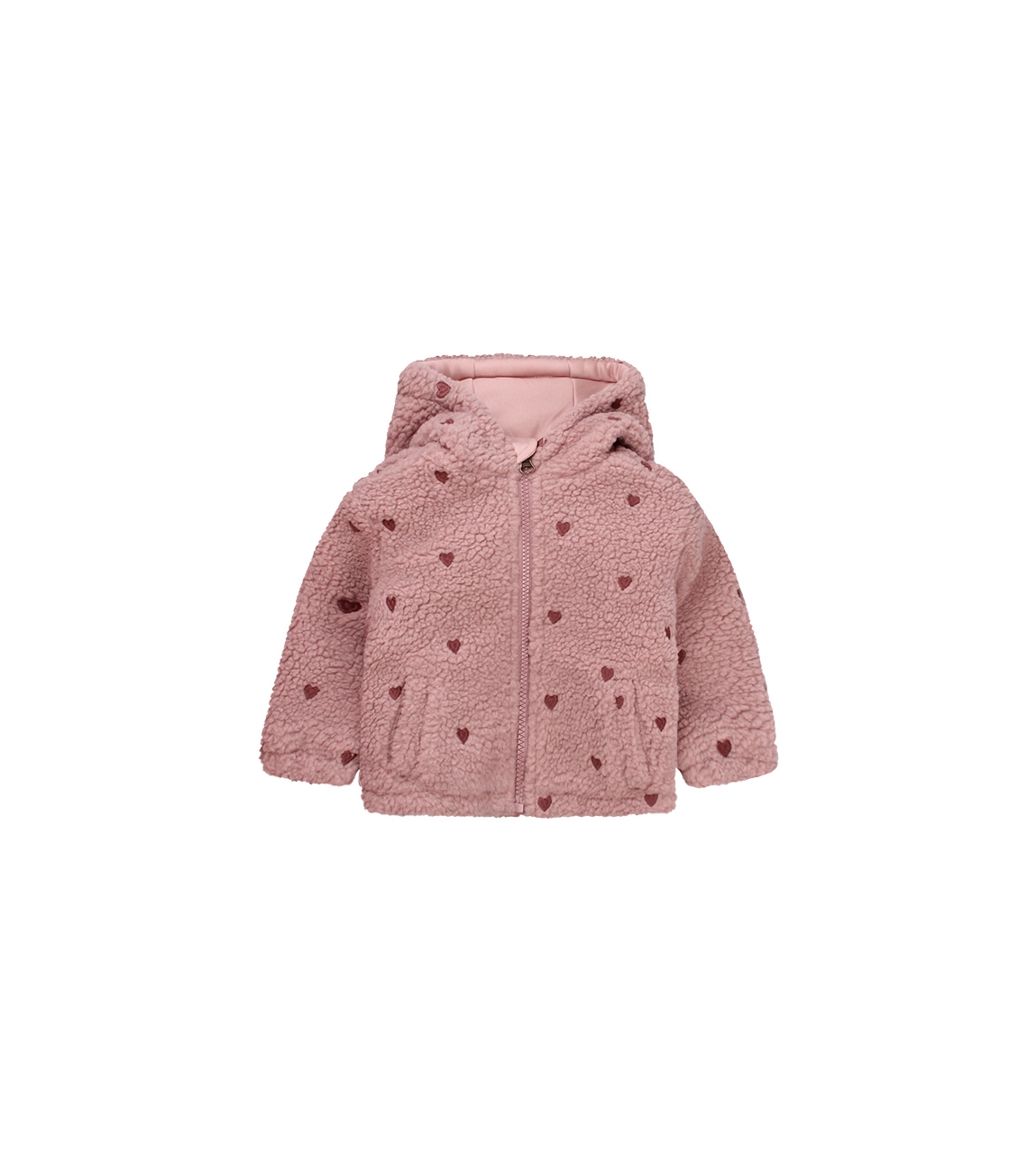 Omschrijving | Teddy, hood, hartjesborduur |