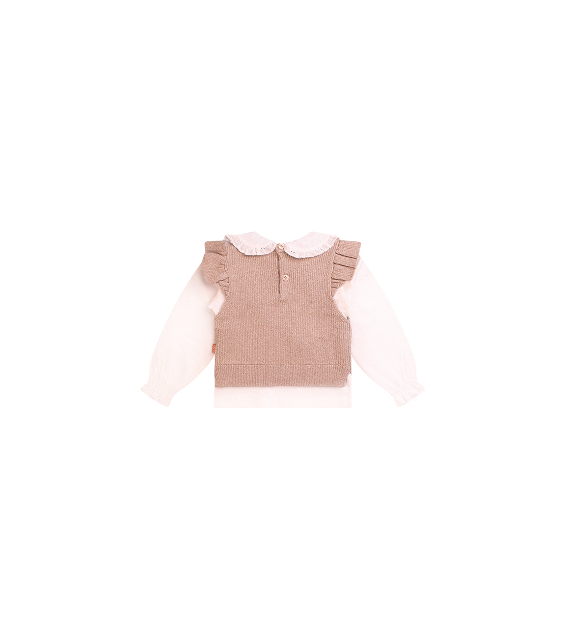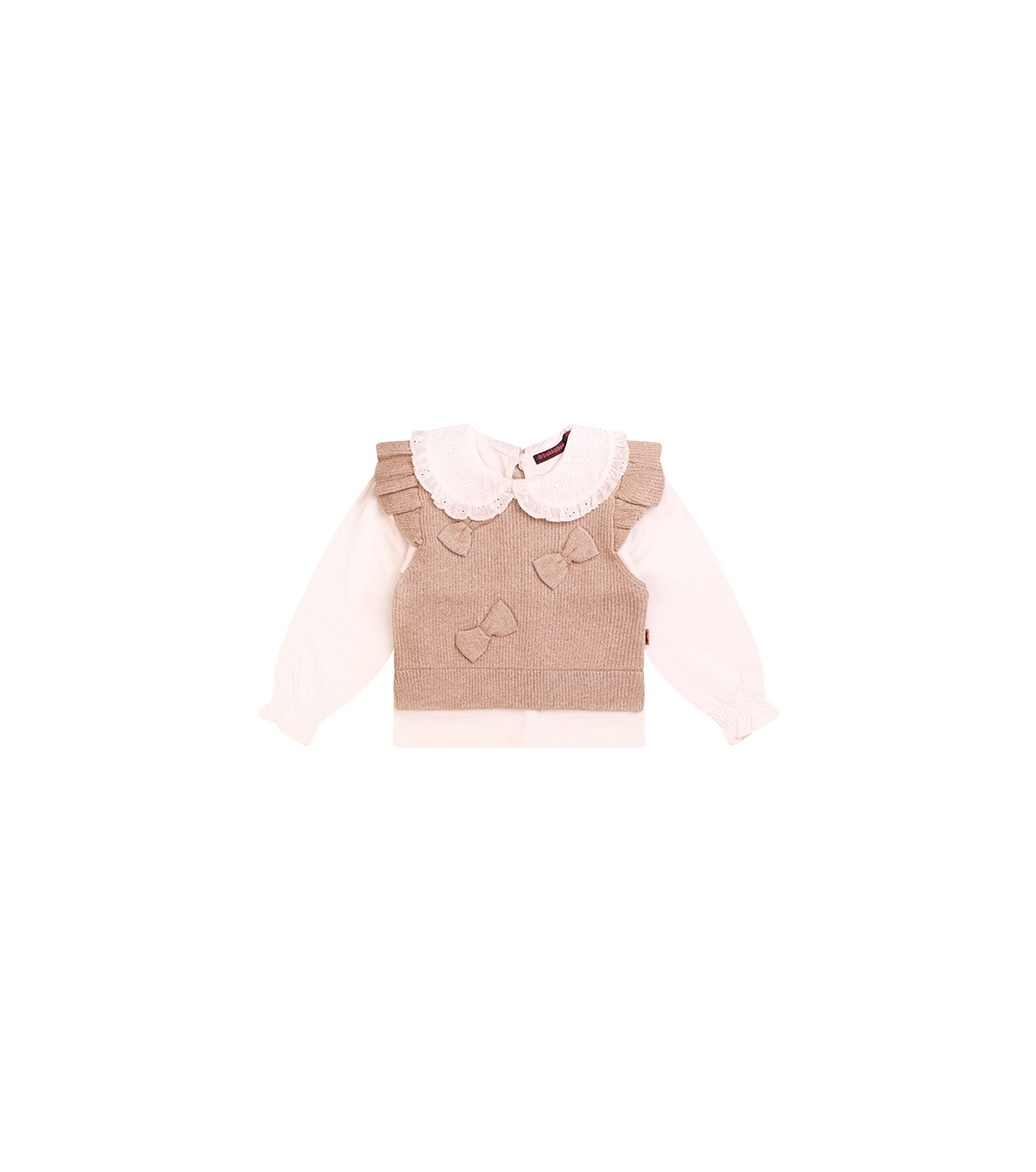 Omschrijving | 2-Delig, spencer strikjes, shirt broderie kraag |