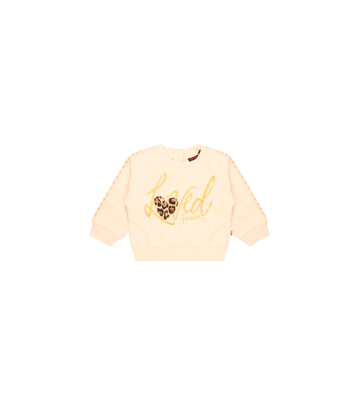 Omschrijving | Co/pol sweat, print, hartjestape mouw |