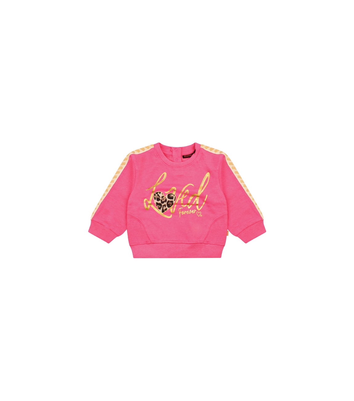 Omschrijving | Co/pol sweat, print, hartjestape mouw |