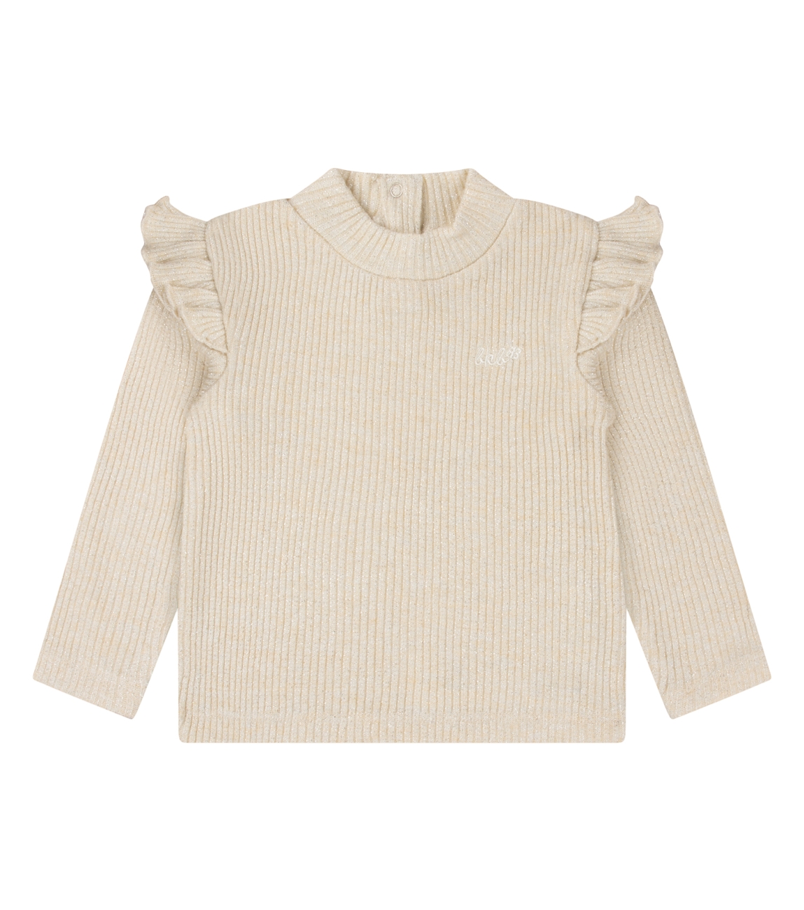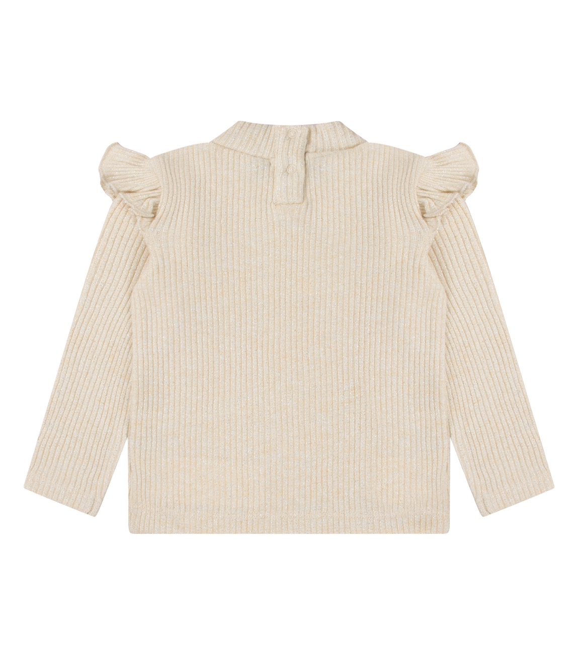 Omschrijving | Ribbrei met lurex, turtleneck, ruche |