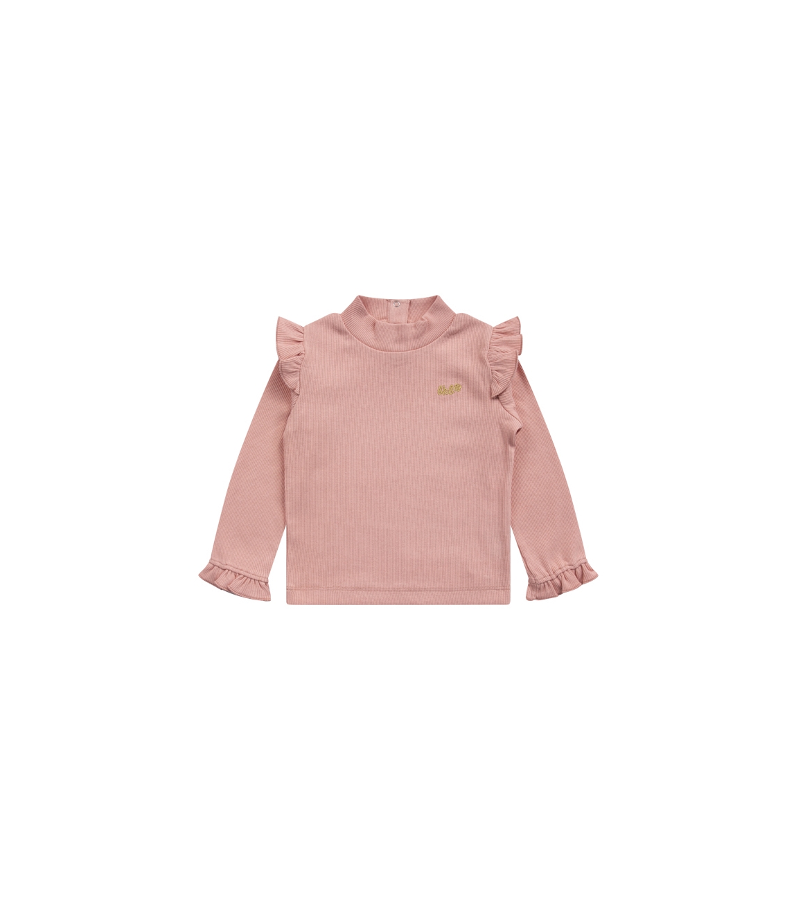 Omschrijving | Co/ly rib, turtleneck, ruche schouder |