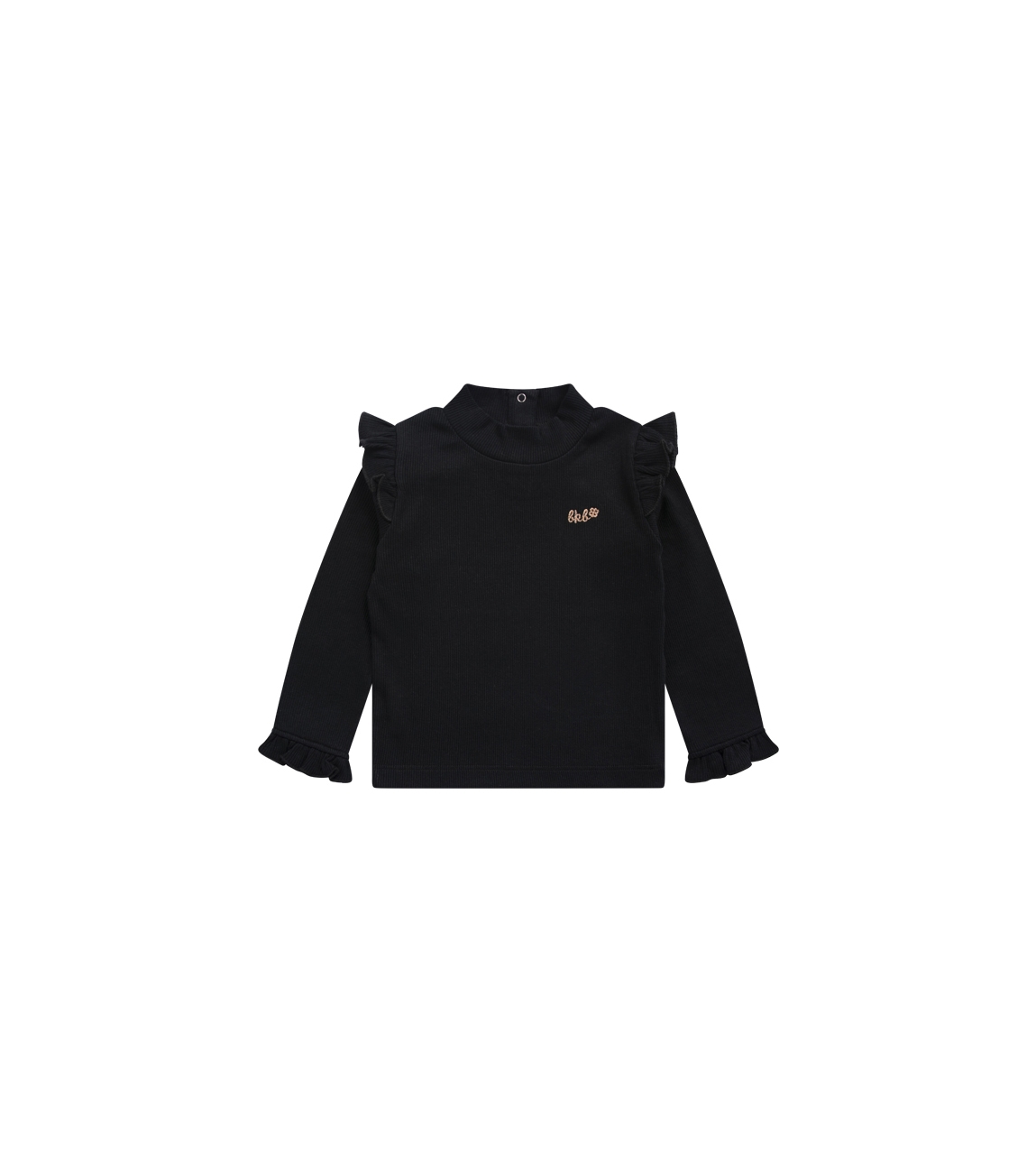 Omschrijving | Co/ly rib, turtleneck, ruche schouder |