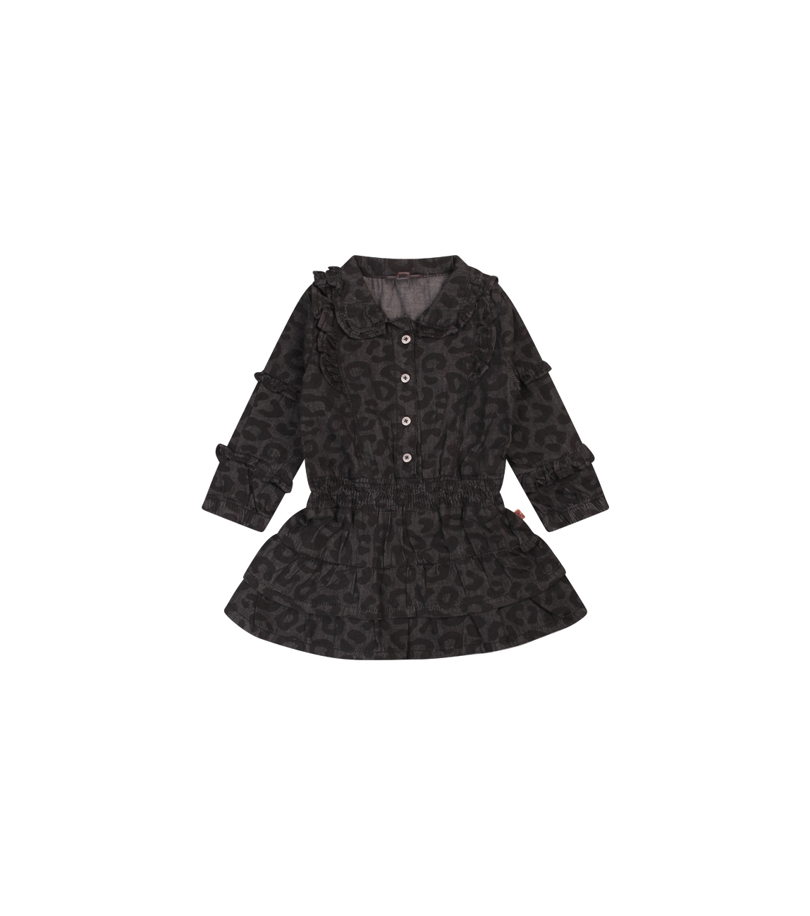 Omschrijving | Chambrey, panterdessin, ruches, smockband |