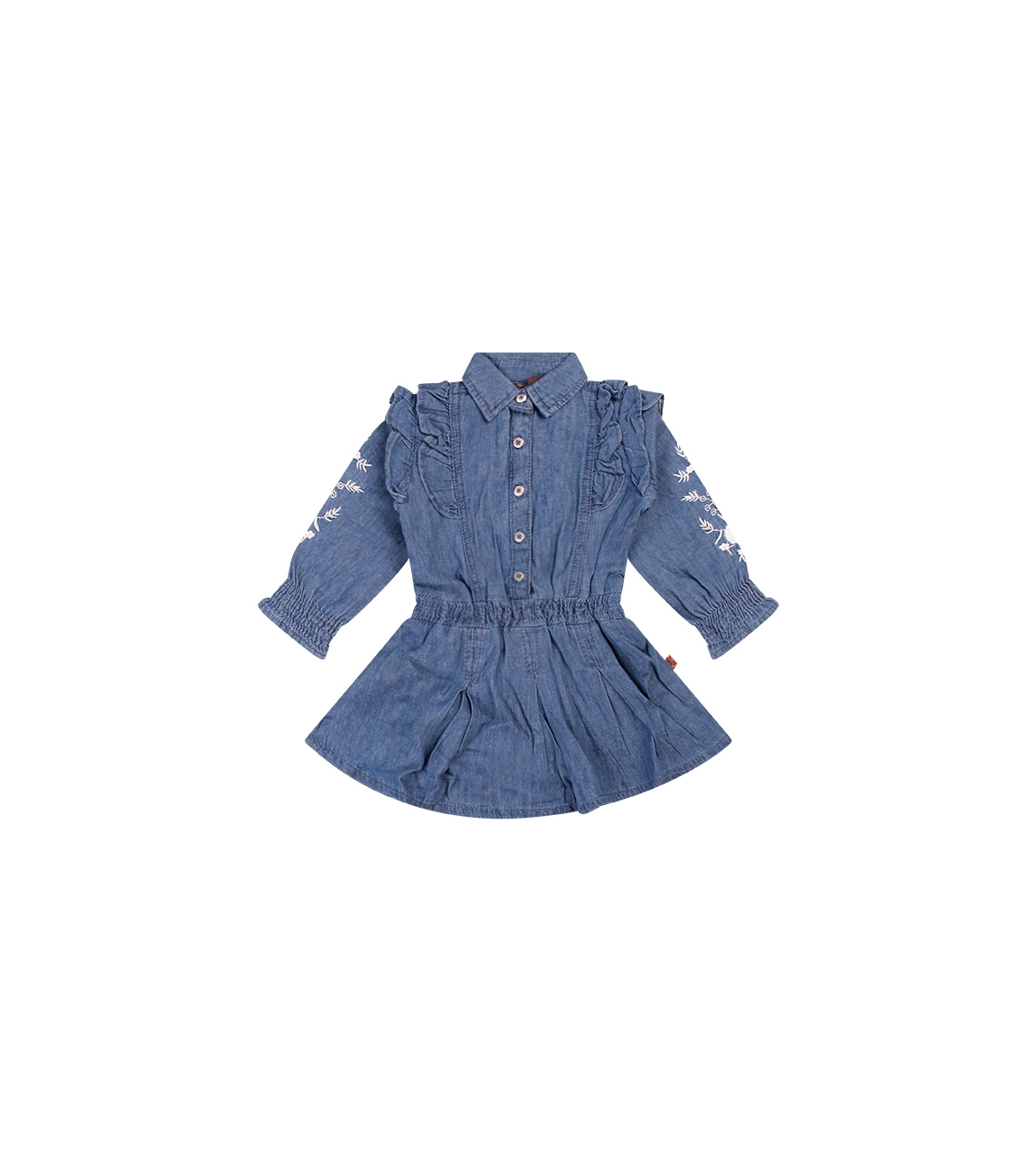 Omschrijving | Co/tencel denim, smockband, ruches |