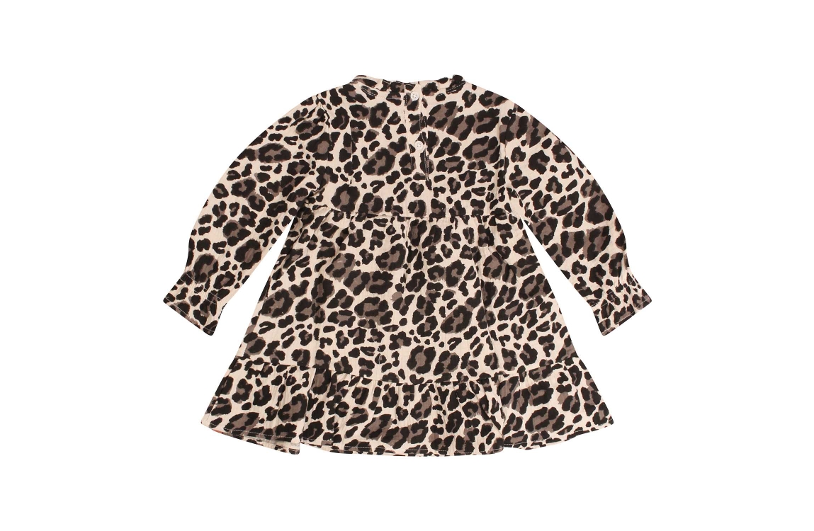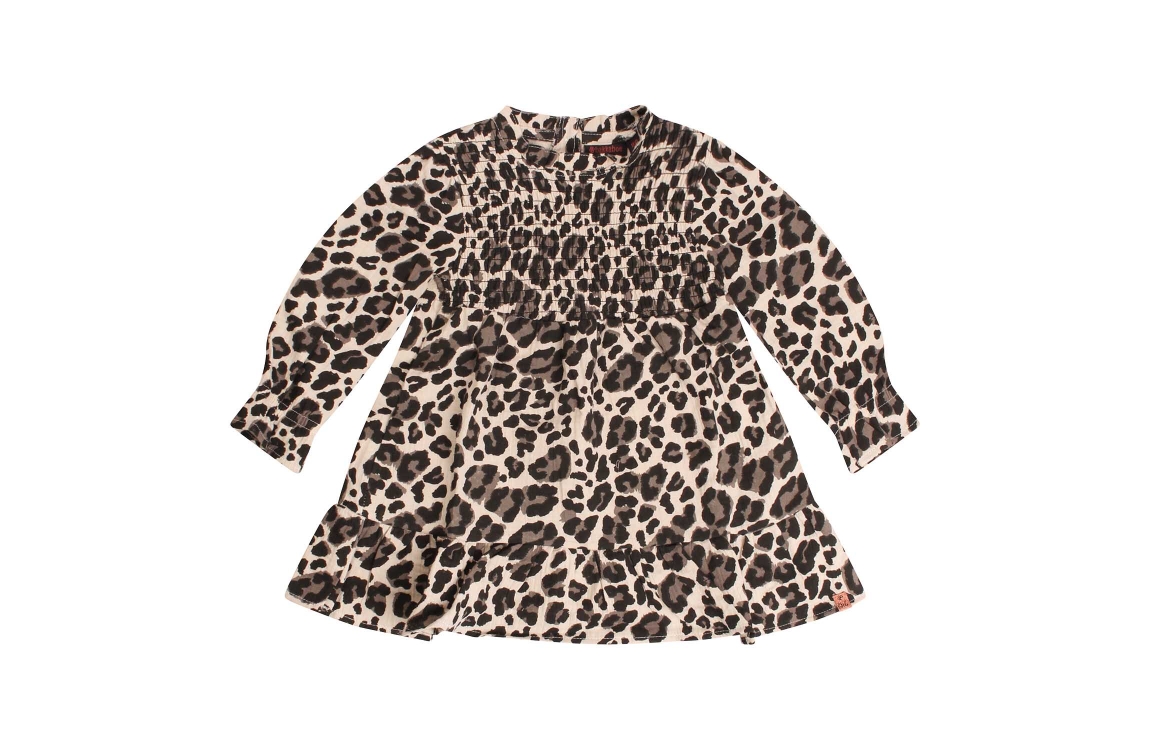Omschrijving Mousseline, panterdessin, smockpas, pofmouw