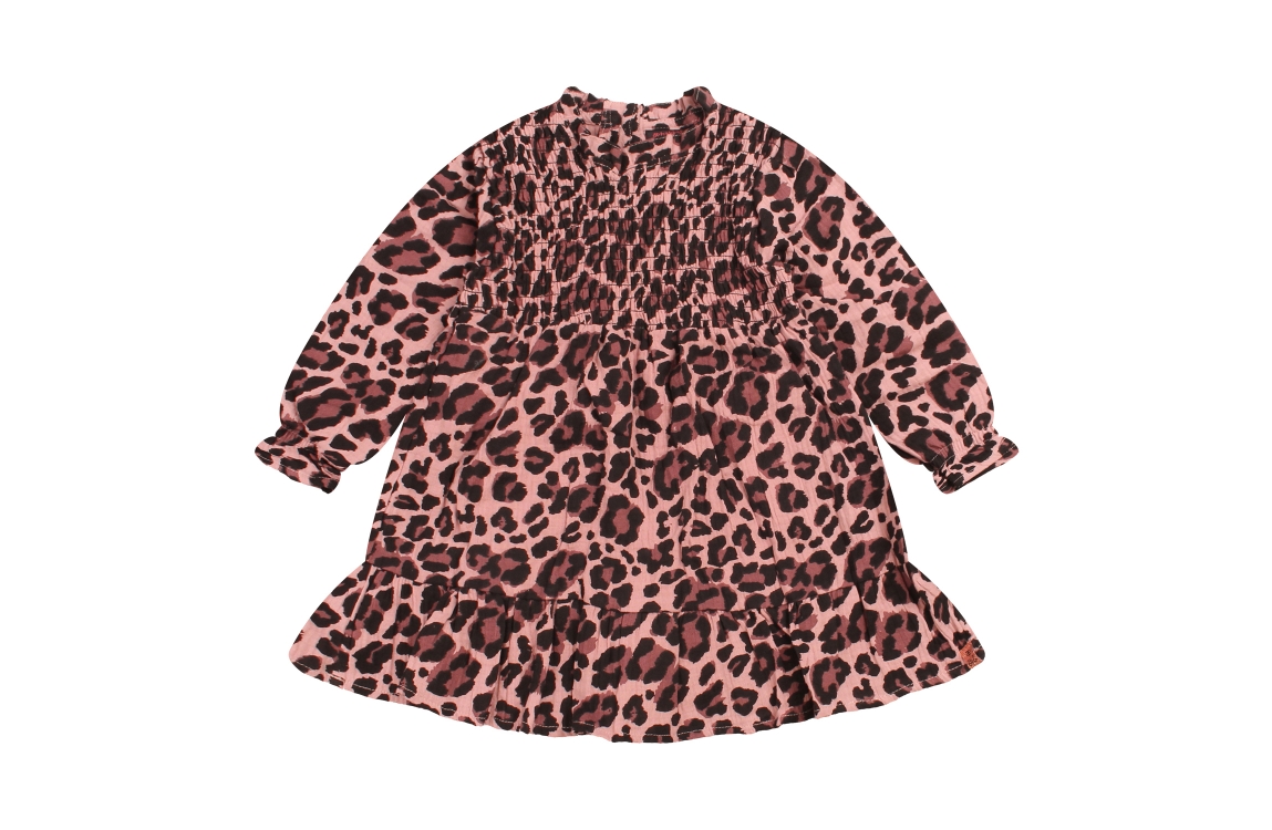 Omschrijving Mousseline, panterdessin, smockpas, pofmouw