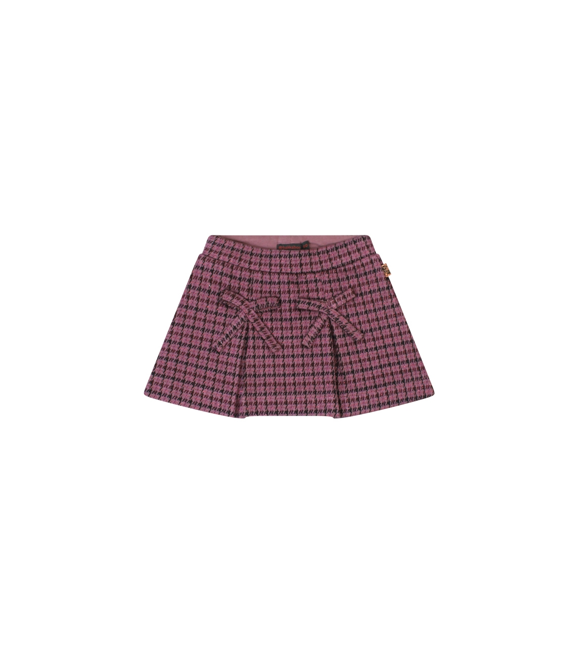 Omschrijving | Ruitdessin, lurex, plooien, strikjes |