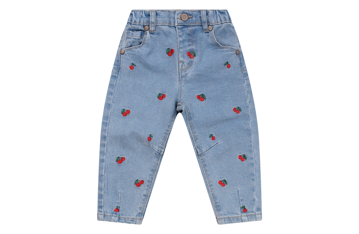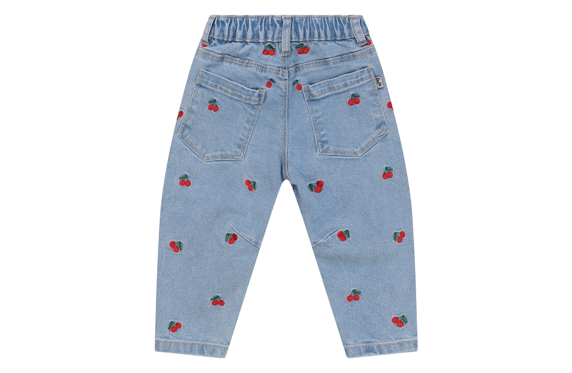 Omschrijving Co/el denim, kersenborduur, toelopende pijp