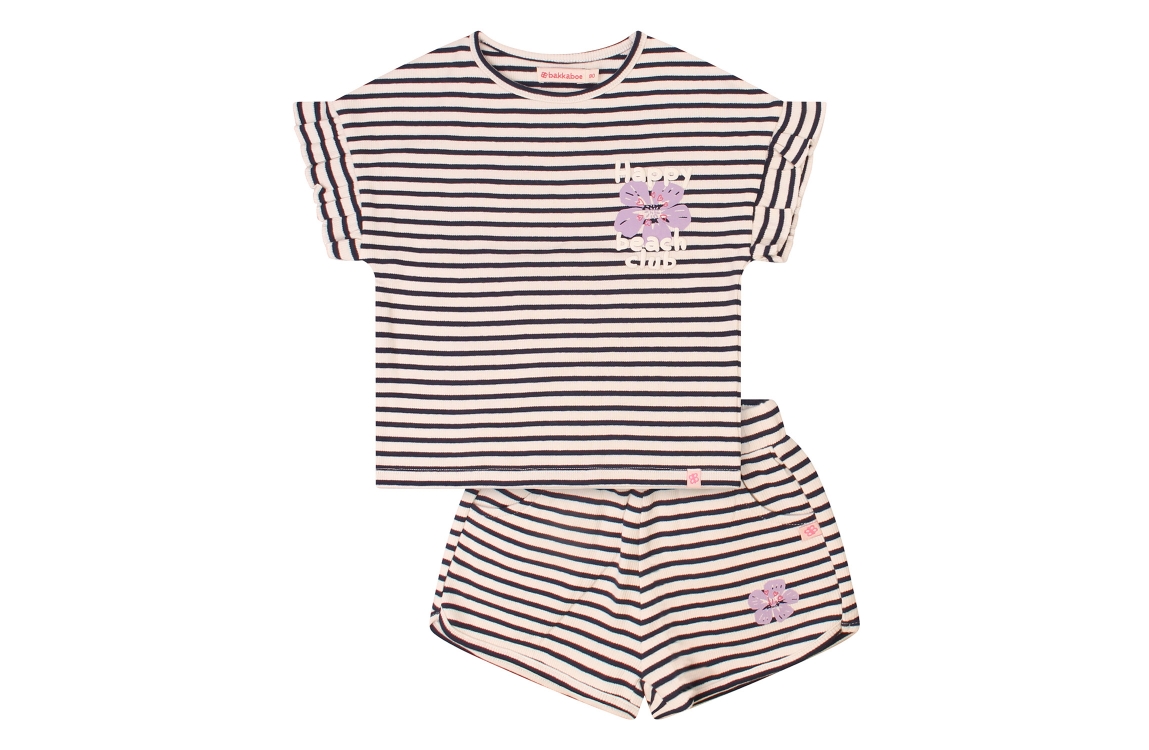 Omschrijving 2-Delig, stripe, bloemprint, puff tekst