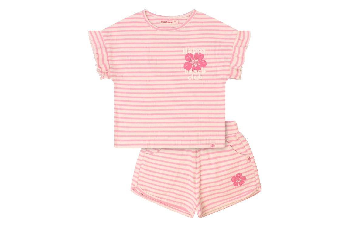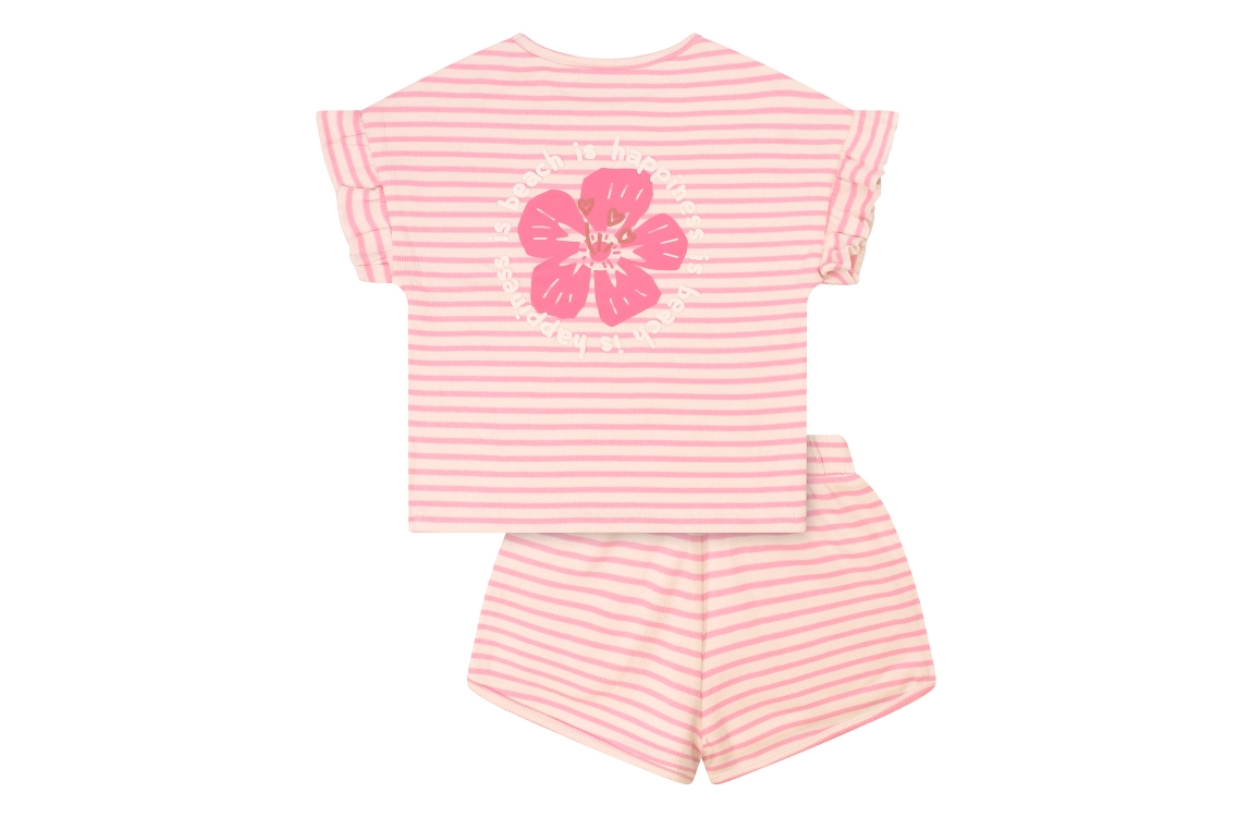 Omschrijving 2-Delig, stripe, bloemprint, puff tekst