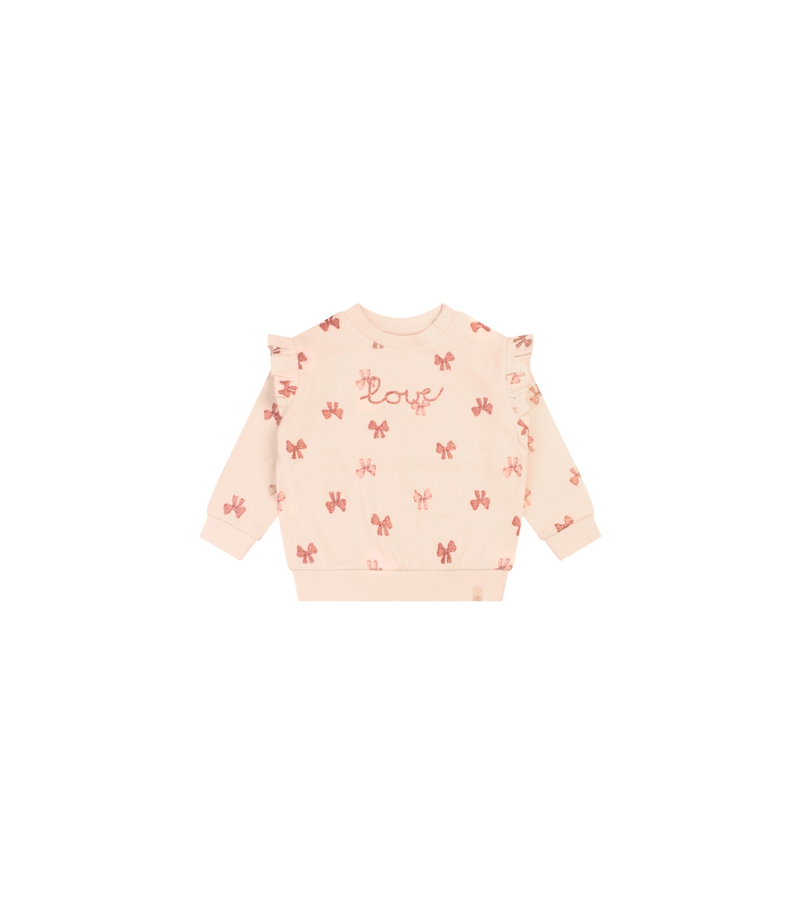 Omschrijving | Co sweat, allover strikjes, ruche |