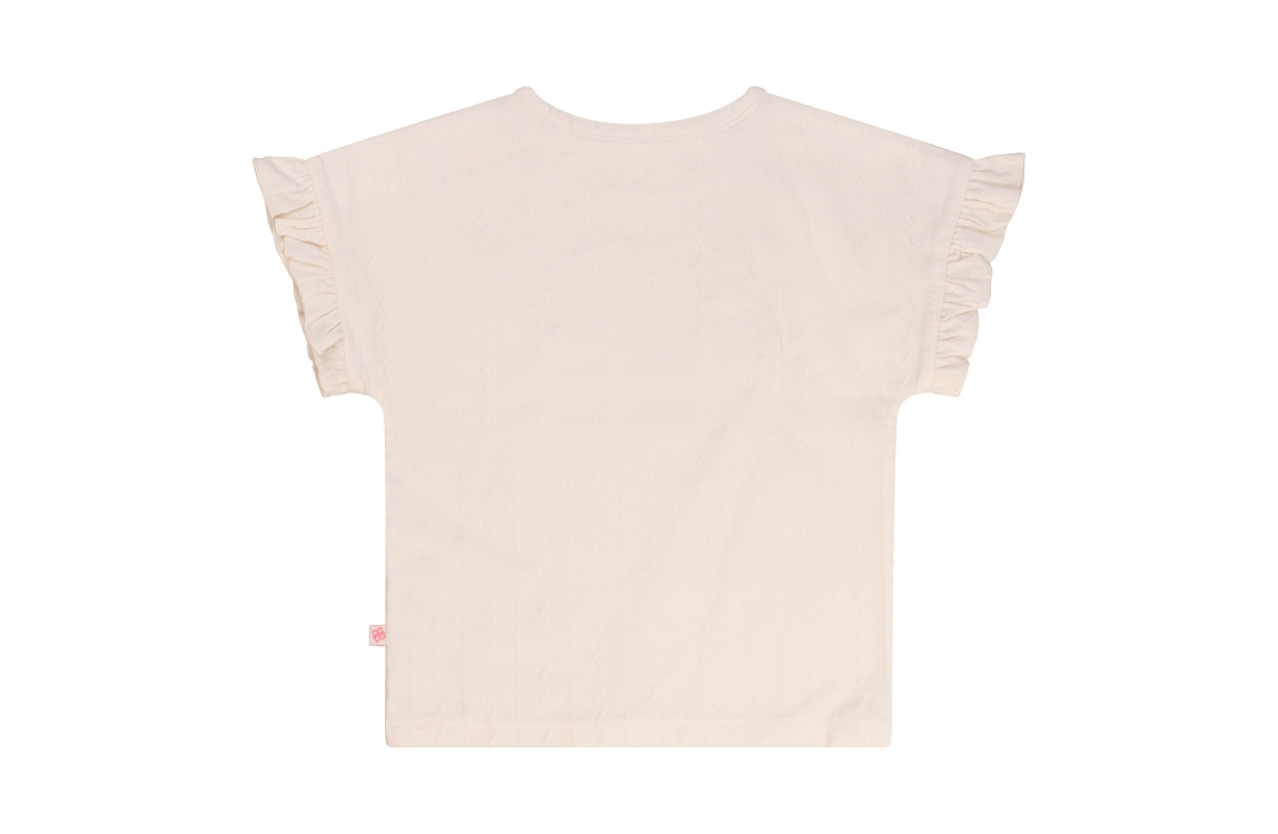 Omschrijving Jacquard jersey, ruche mouw, borduurtje