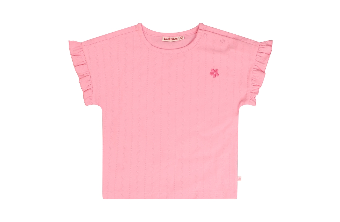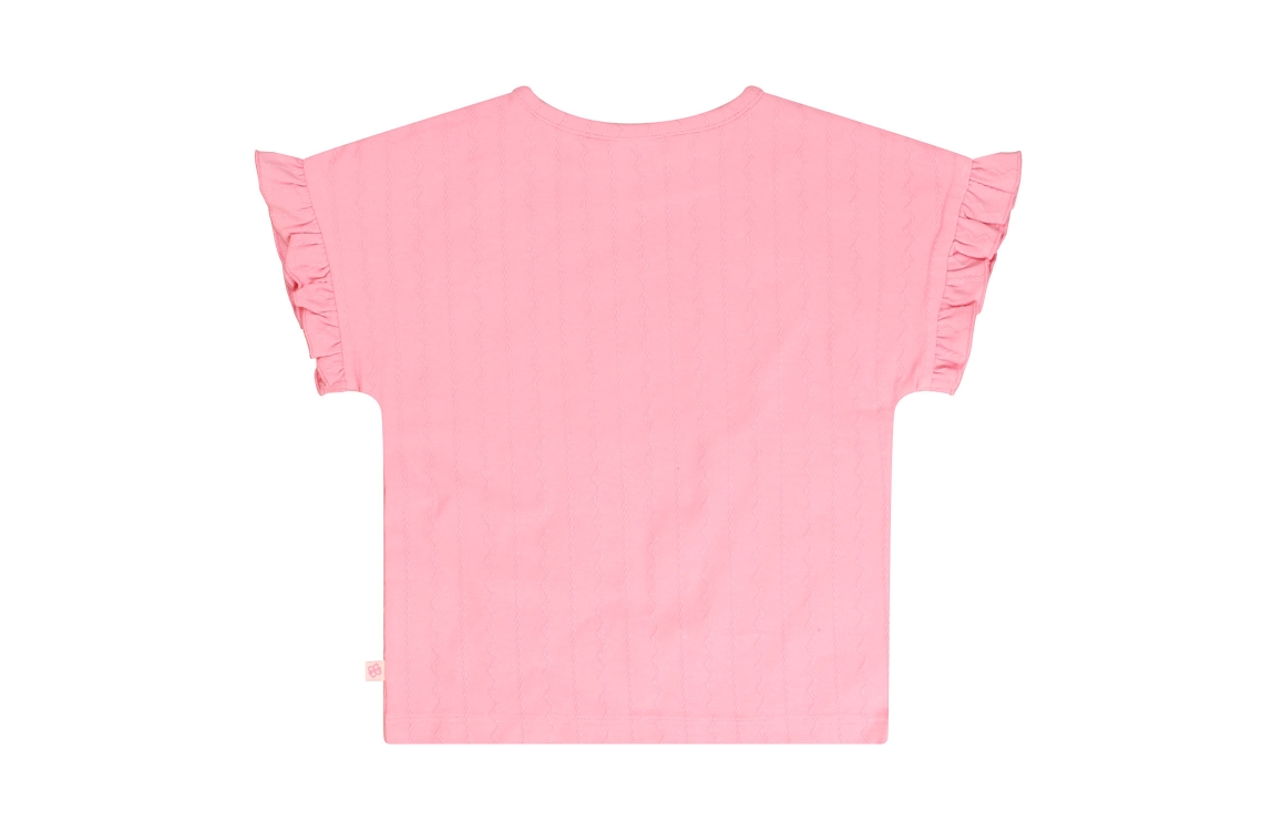 Omschrijving Jacquard jersey, ruche mouw, borduurtje