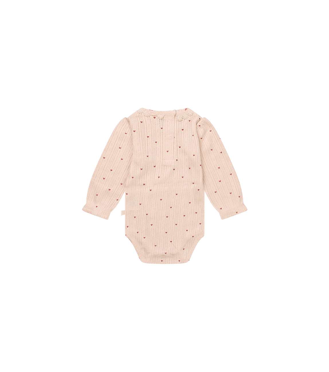 Omschrijving | Bio co ajour, hartjesprint, pofmouw, kantje |