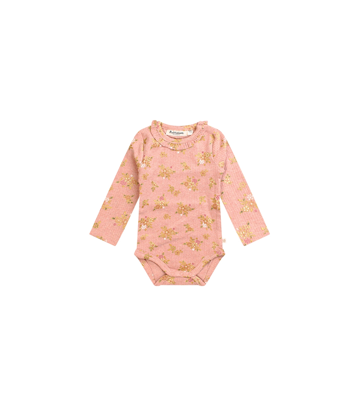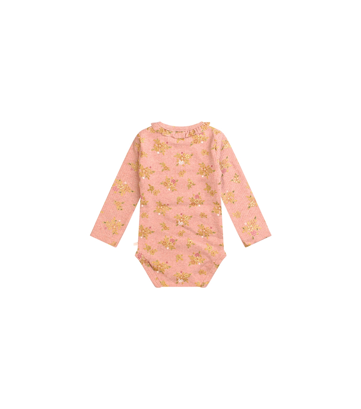 Omschrijving | Bio co/ly rib, bloemprint met glitter |