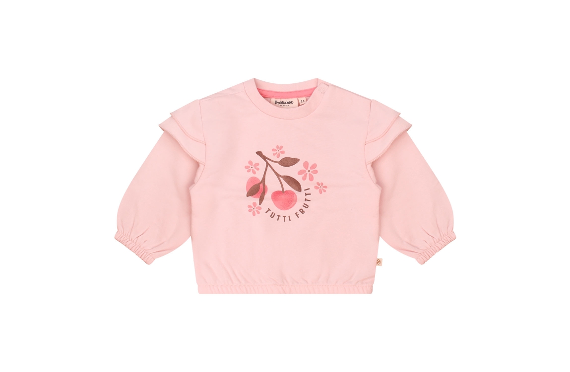 Omschrijving Bio co/ly sweat, print/folieprint, ruches