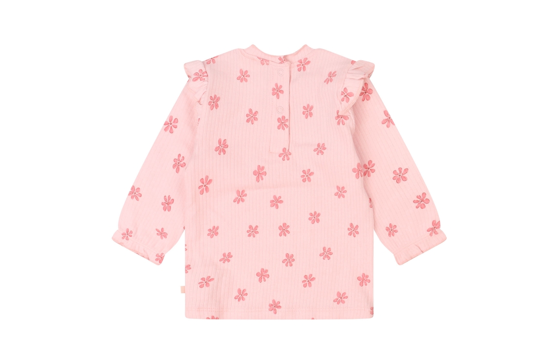 Omschrijving Bio co/ly rib, bloemprint met glitter