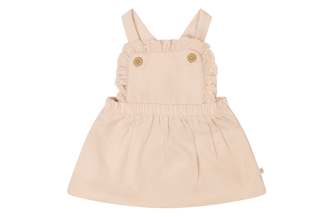 Omschrijving Bio co/ly sweat overgooier, broderie ruche