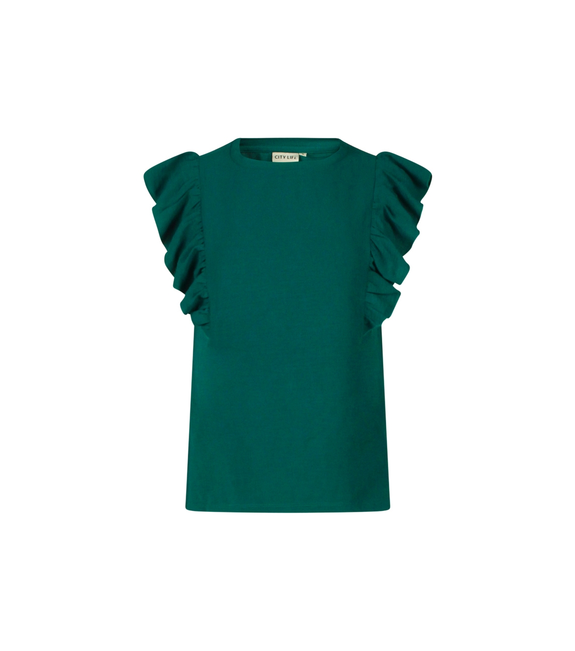Omschrijving | Pol. crepe, deelnaden, ruches |