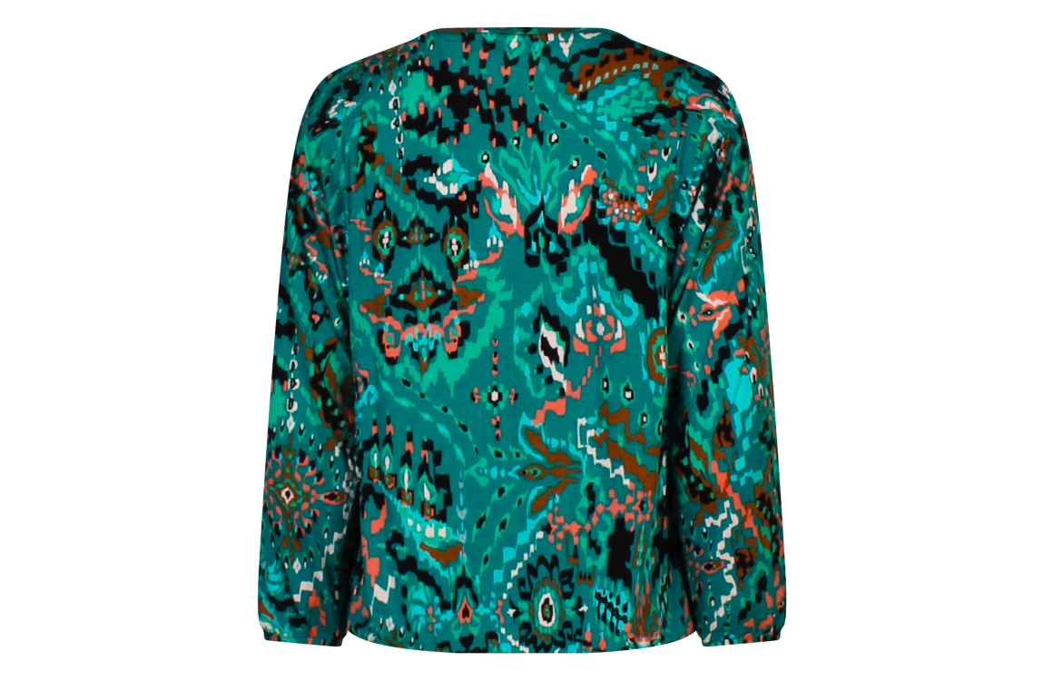Omschrijving Visc/el, ikatdessin, 3/4 mouw, smock