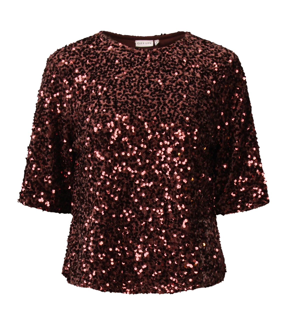 Omschrijving | Pol. velvet pailetten, halve mouw |
