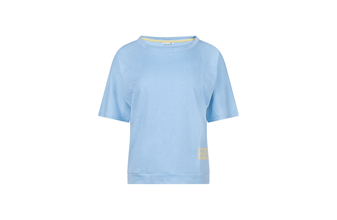 Omschrijving Co/pol sweat, tekstprint achter, korte mouw
