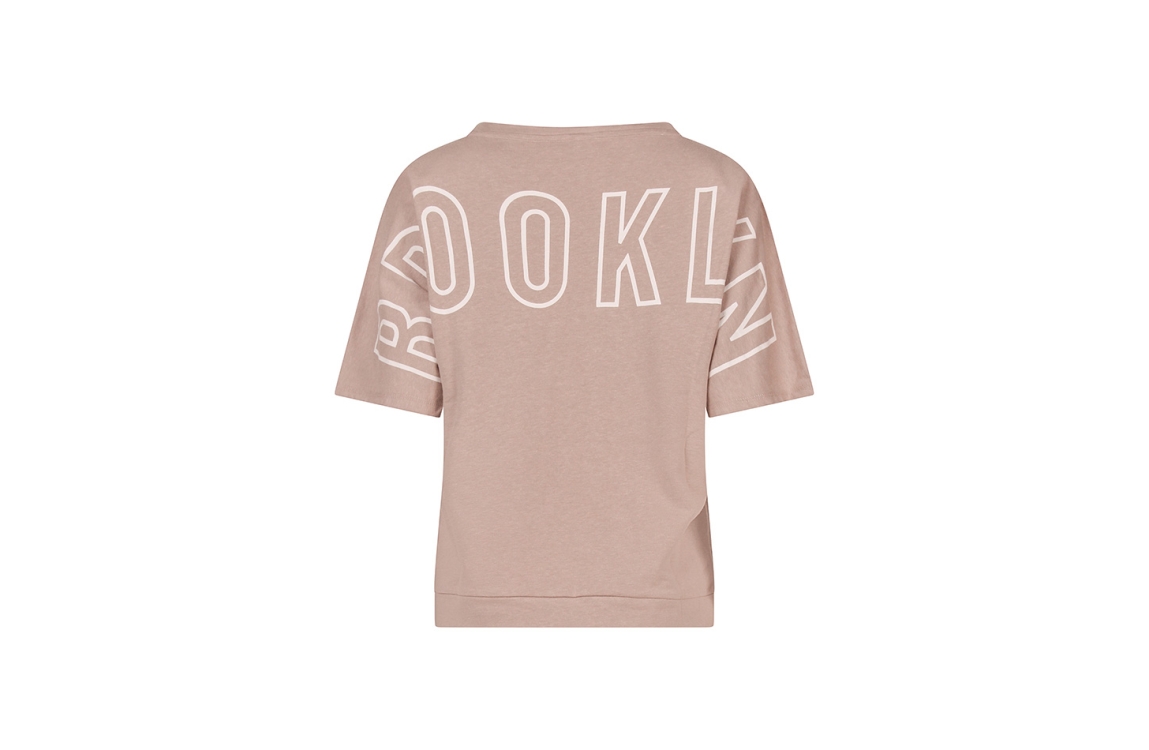 Omschrijving Co/pol sweat, tekstprint achter, korte mouw
