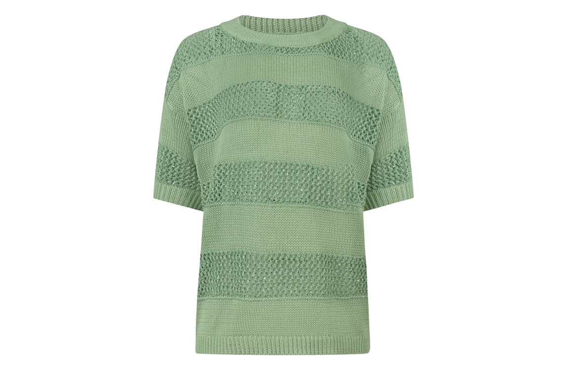 Omschrijving Acr, ajourstreep/pailetten, korte mouw