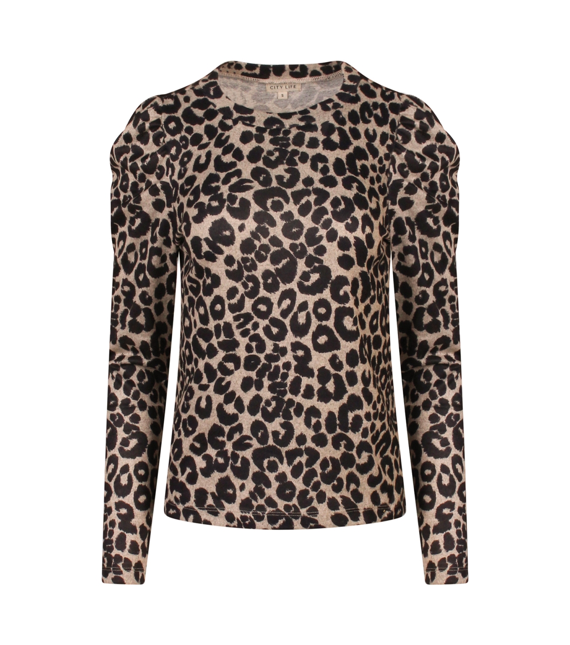 Omschrijving | Pol/el breikwaliteit, panterdessin, pofmouw |