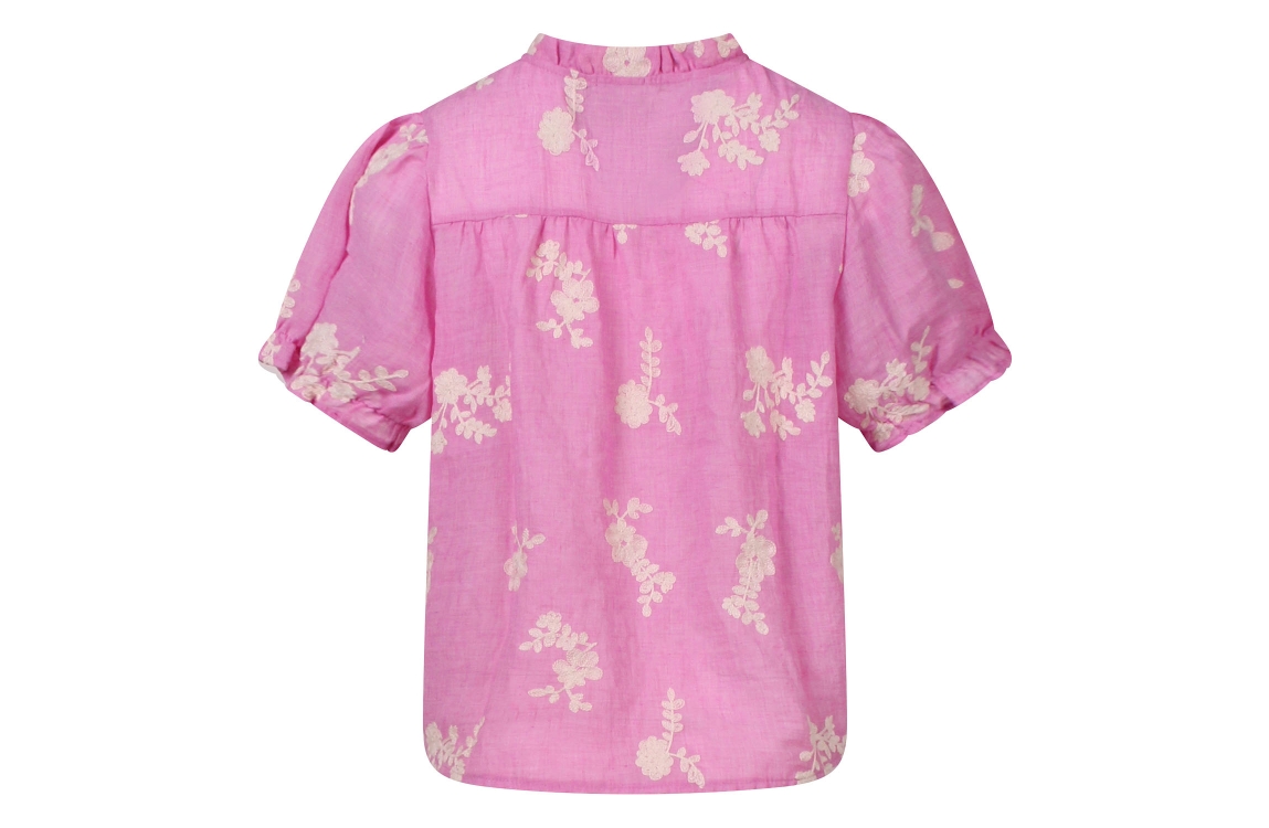 Omschrijving Co crepe, geborduurde bloem, pofmouw