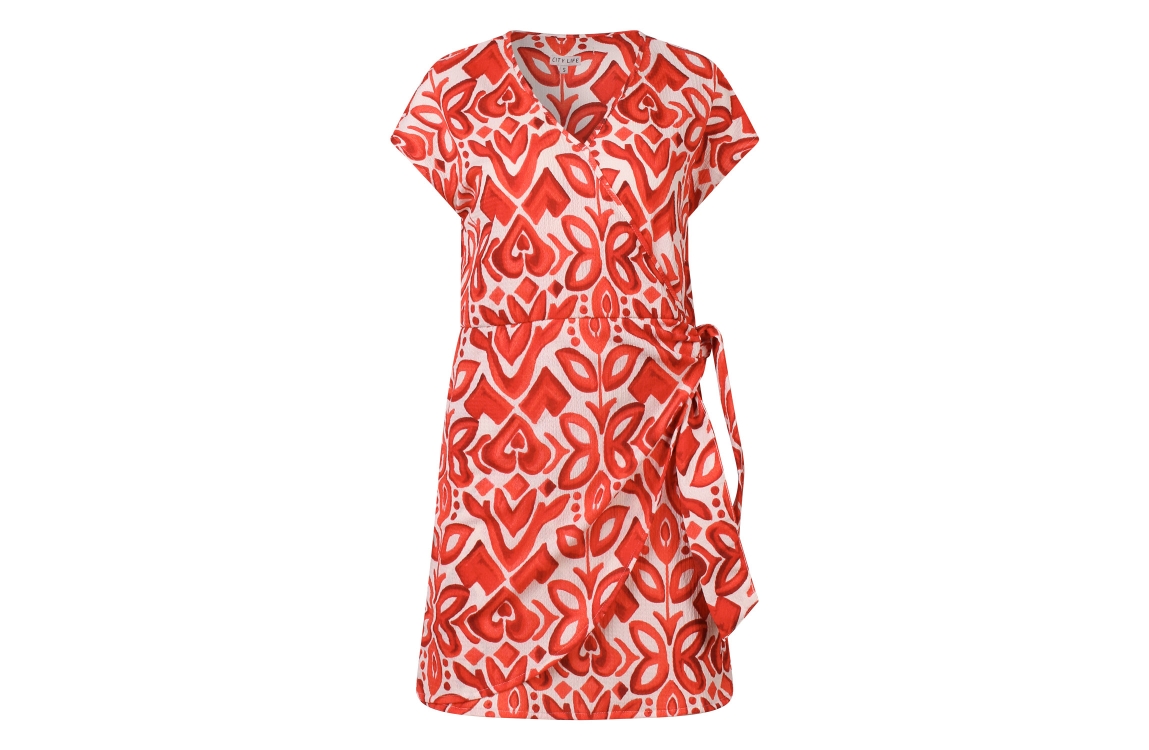 Omschrijving Pol/el crinkle, gedessineerd, overslag, strik