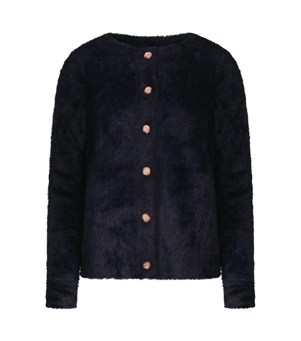 Omschrijving | Pol. featheryarn, ribbrei, fancy knopen |