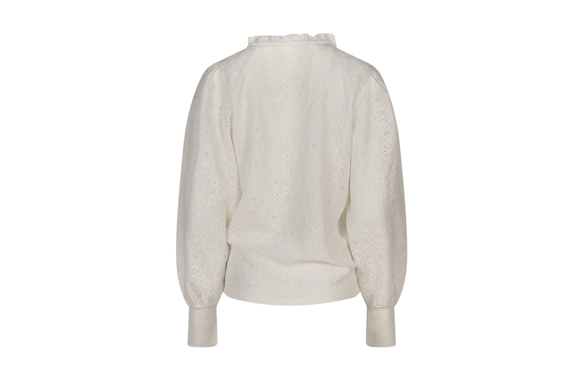 Omschrijving Pol/el ajour, pofmouw, ruche hals