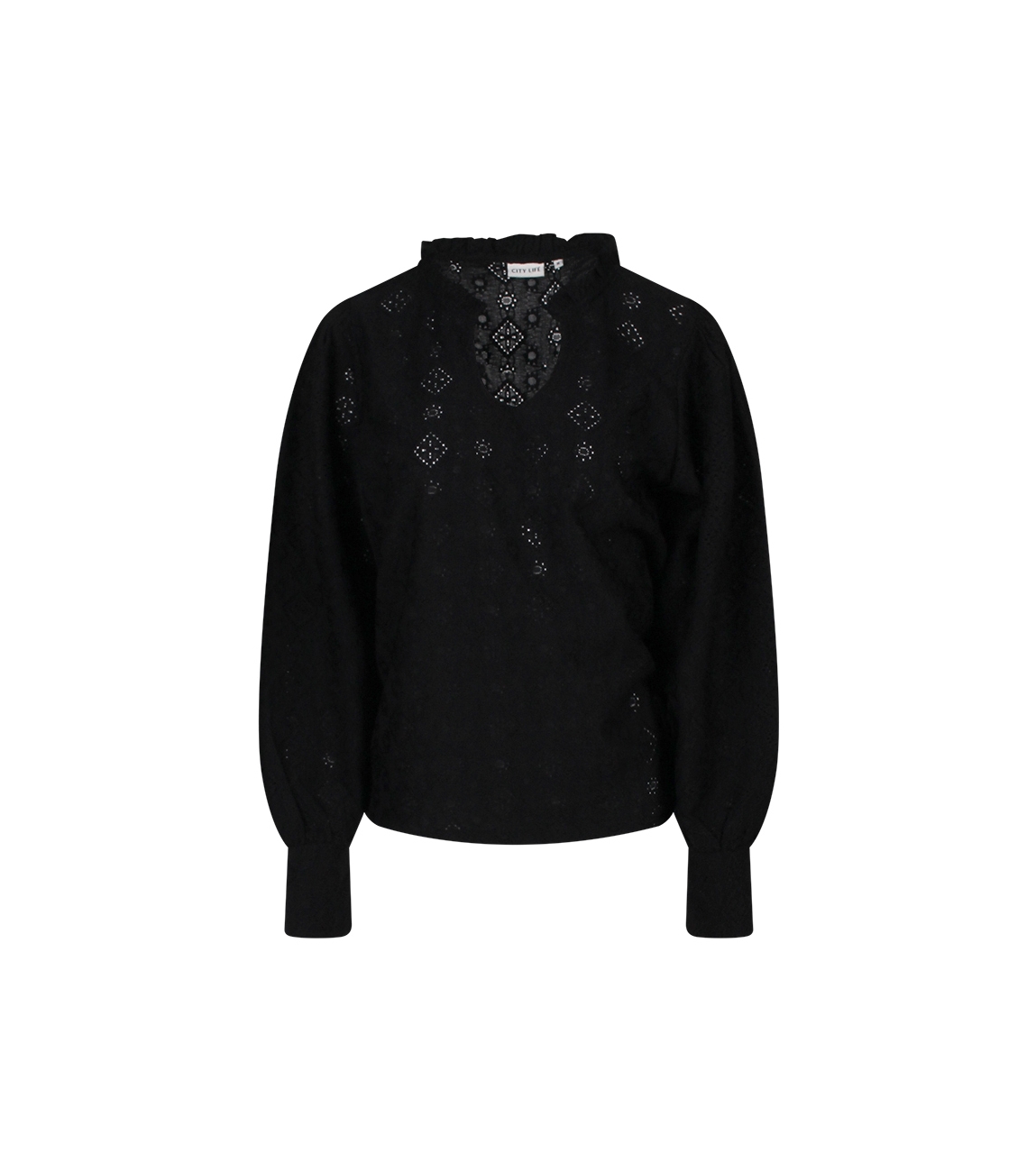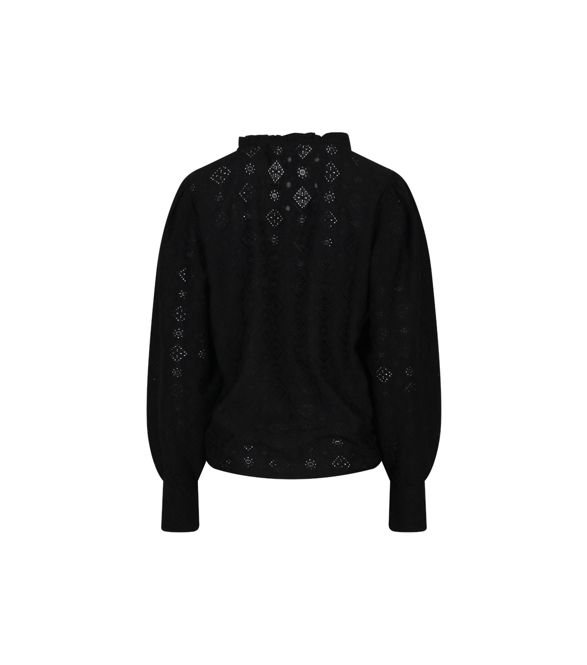 Omschrijving | Pol/el ajour, pofmouw, ruche hals |