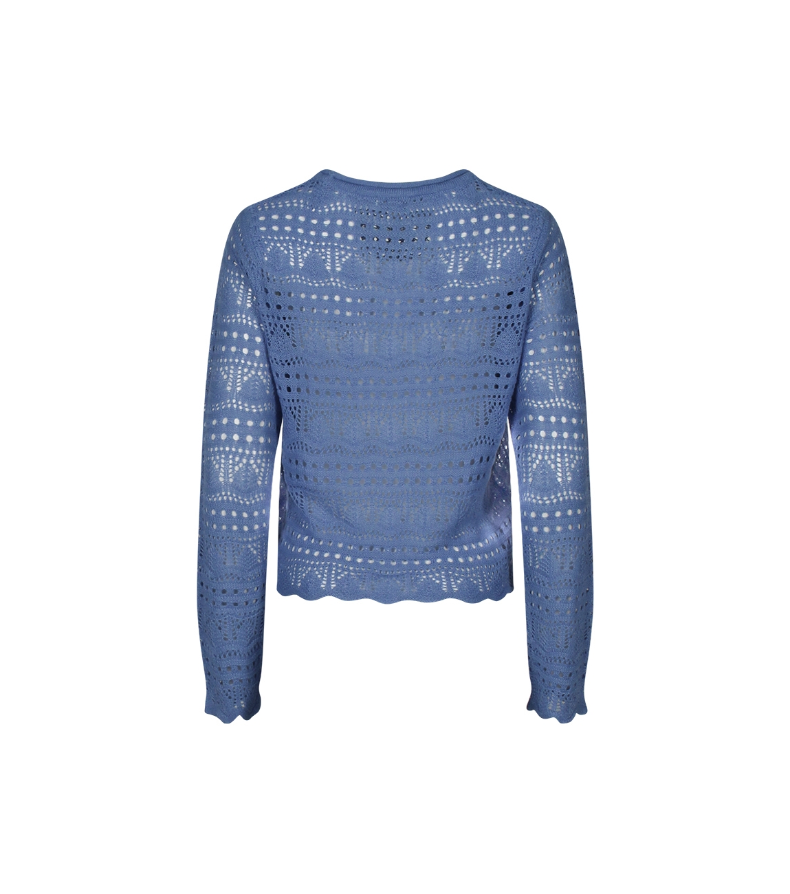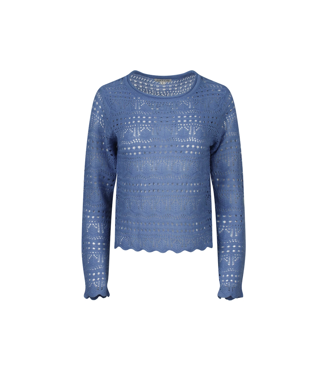 Omschrijving | Acr. ajourbrei, schulprandje, lange mouw |