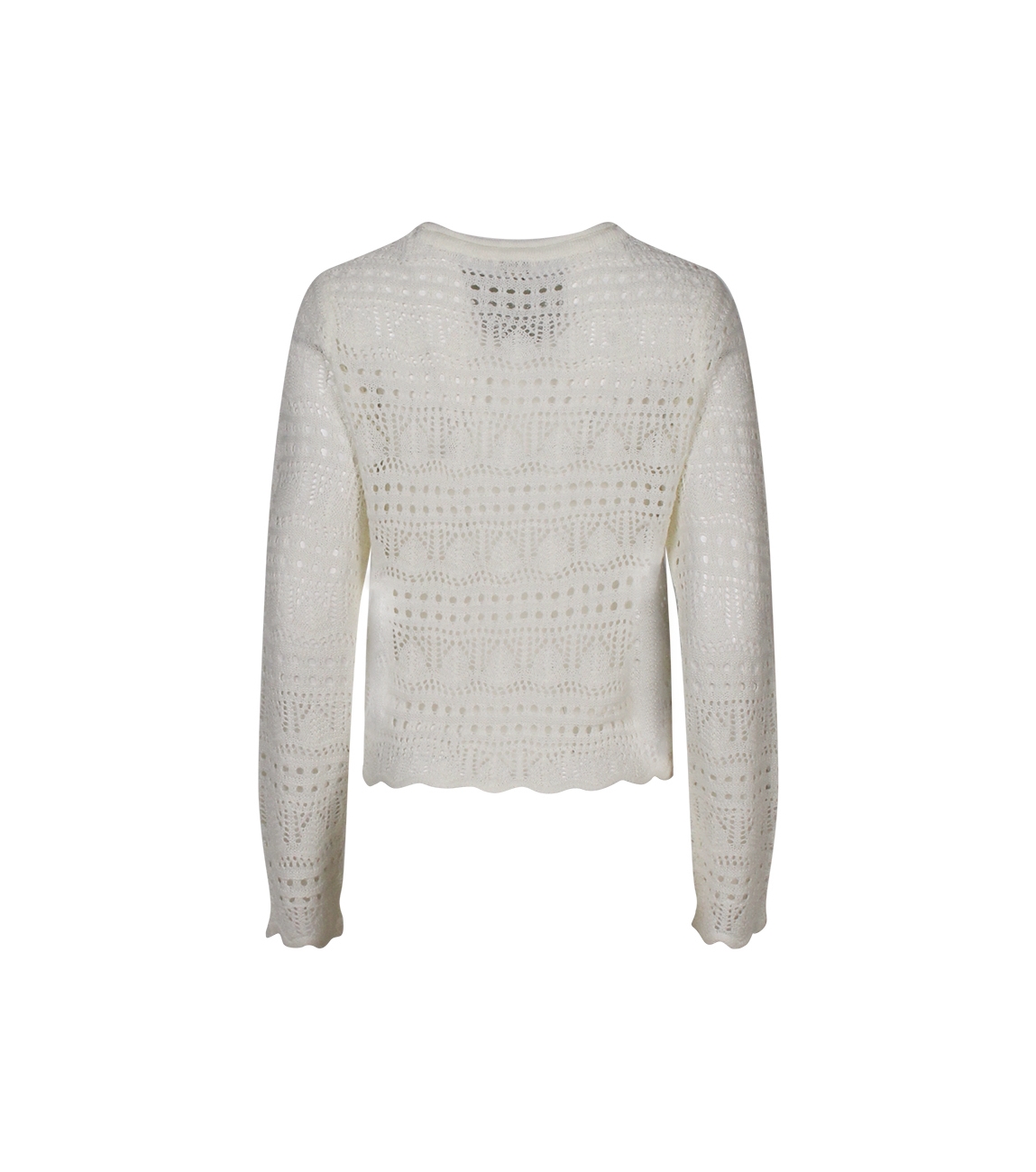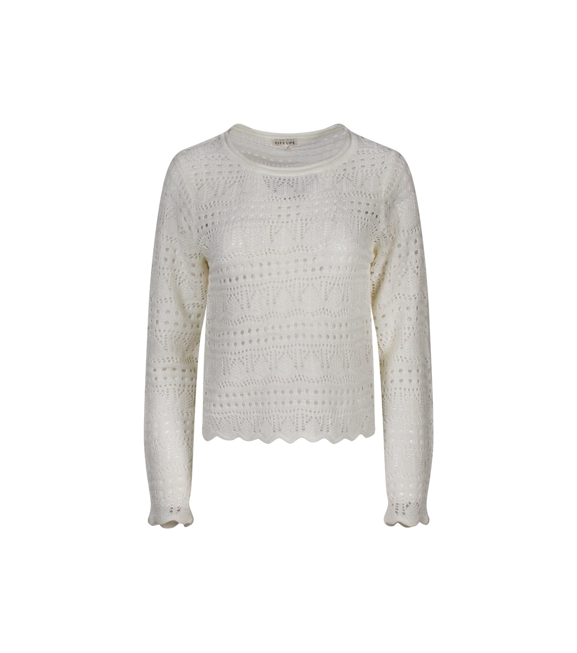 Omschrijving | Acr. ajourbrei, schulprandje, lange mouw |