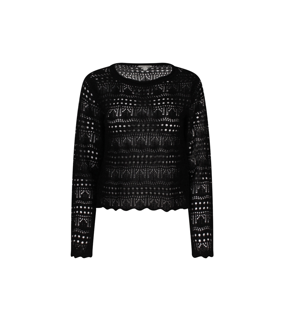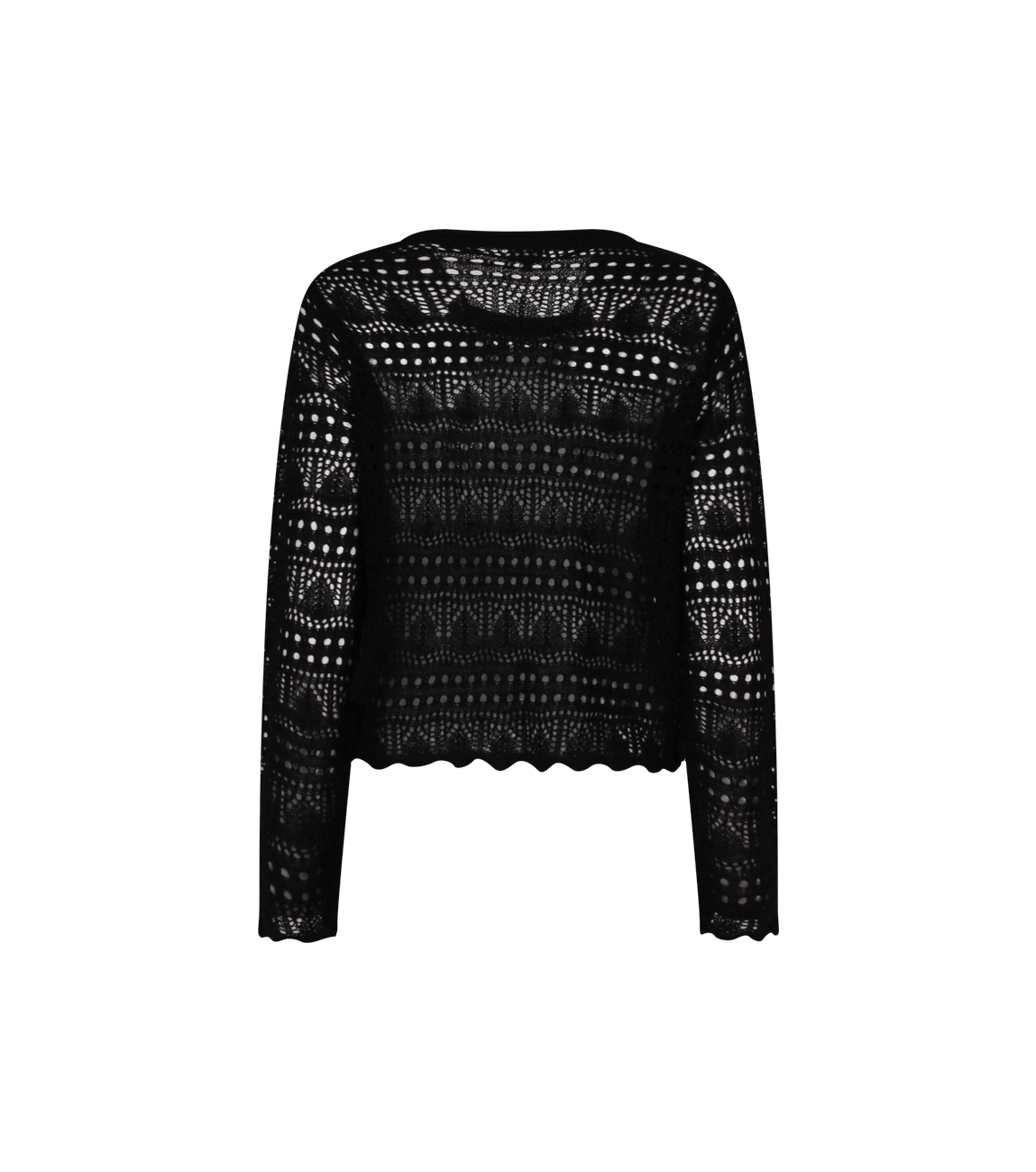 Omschrijving | Acr. ajourbrei, schulprandje, lange mouw |