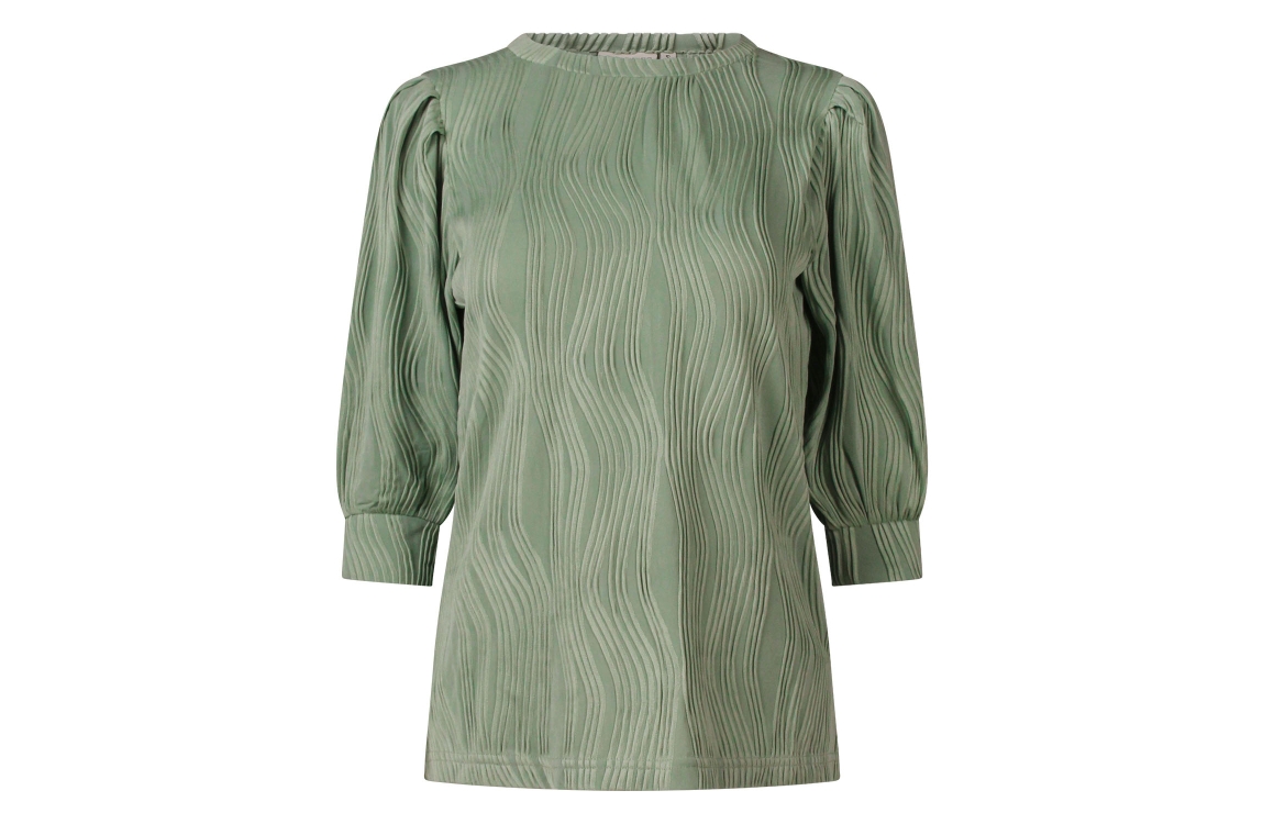 Omschrijving Pol/el, golven jacquard, pofmouw
