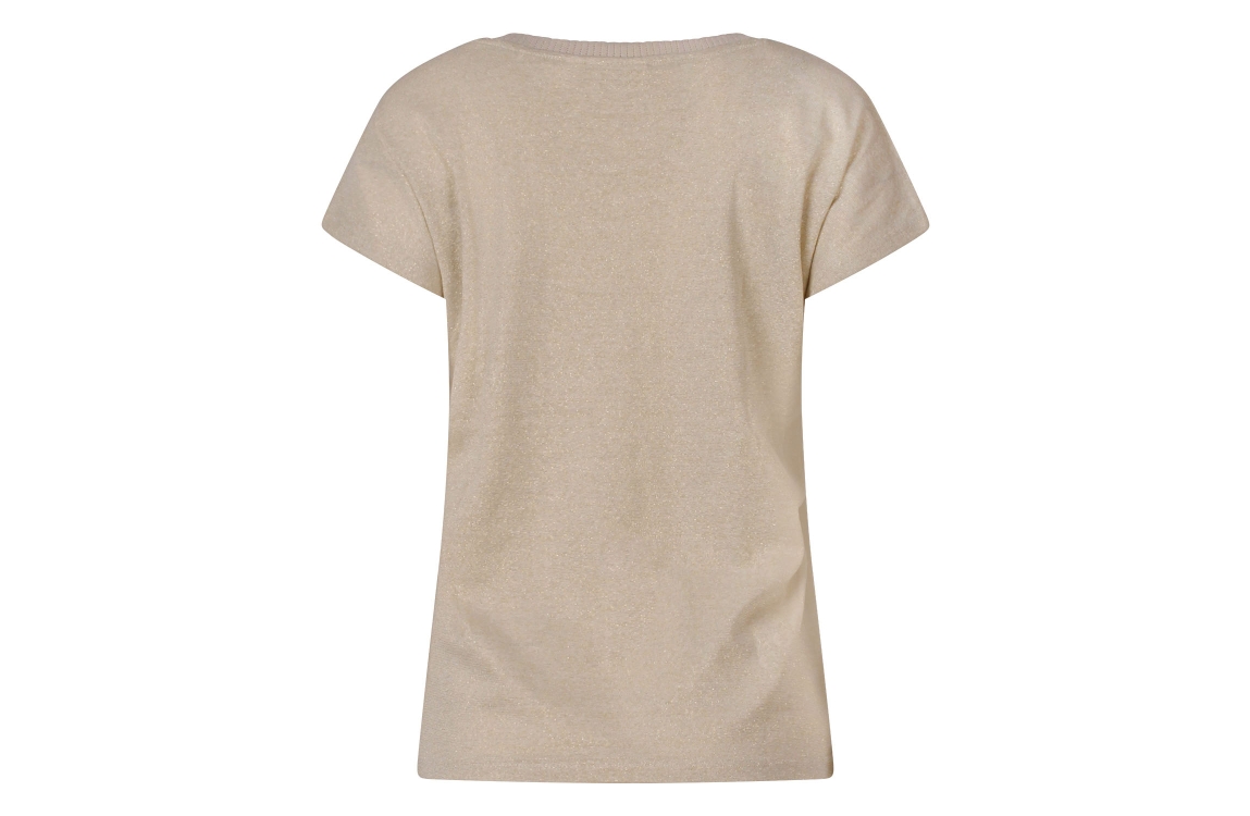 Omschrijving Lurex, v-hals, aangeknipte korte mouw