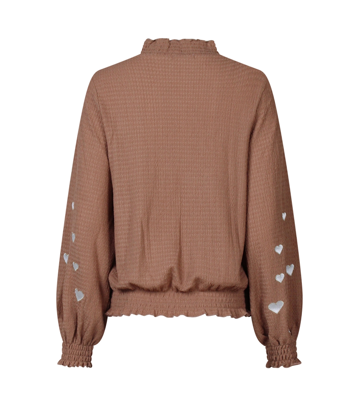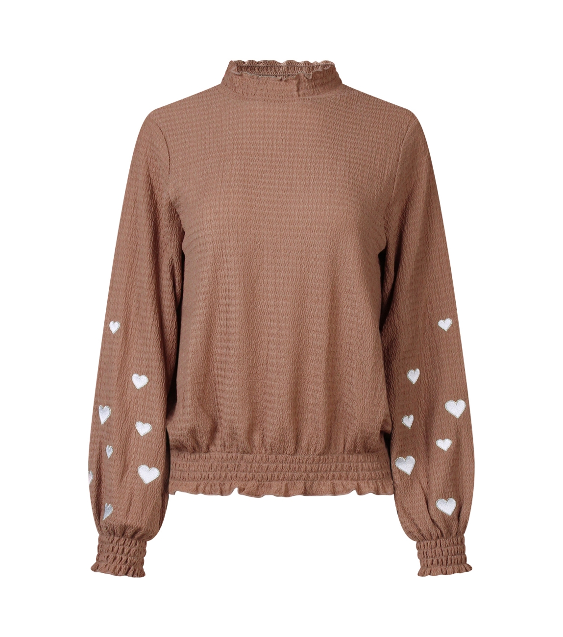 Omschrijving | Pol/el crinkle, hartborduur, gesmockt |
