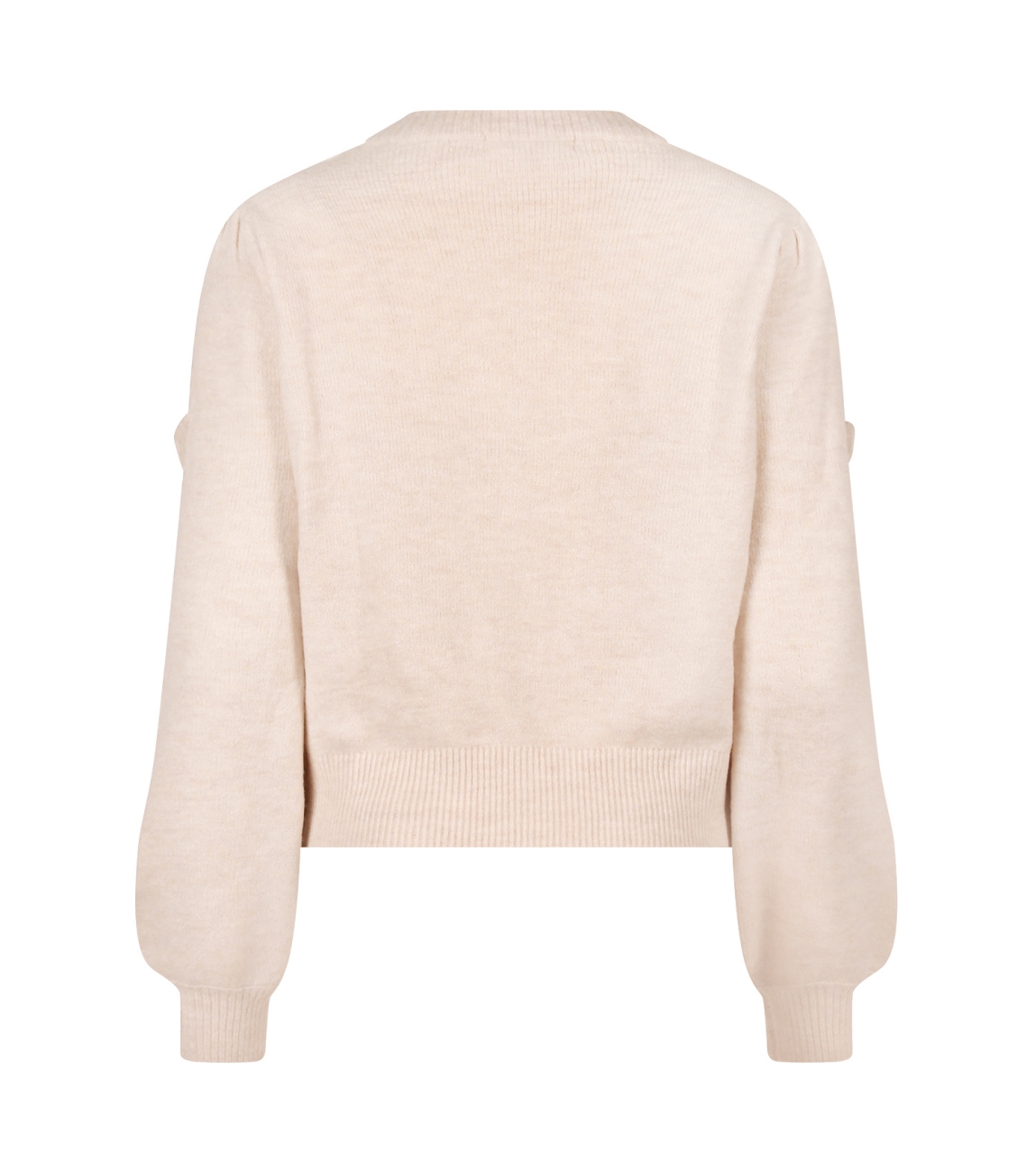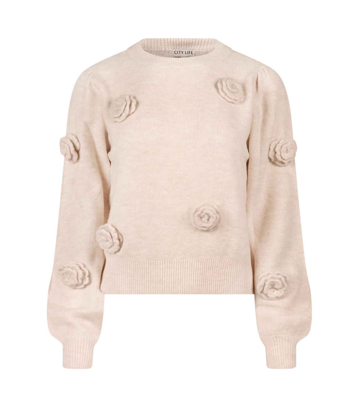 | Omschrijving | Brei, pofmouw, opgestikte bloemen |