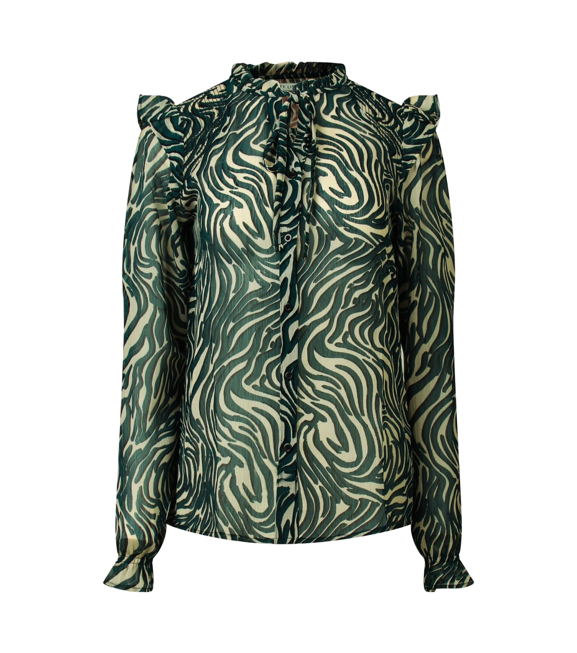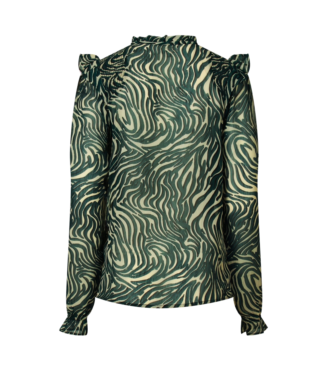 Omschrijving | Pol. chiffon, smock schouder, gedessineerd |