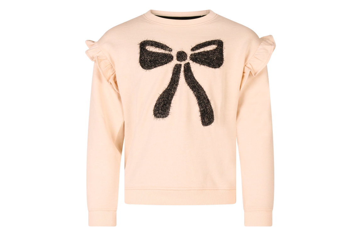 Omschrijving Co/pol sweat, glitterstrik, ruche