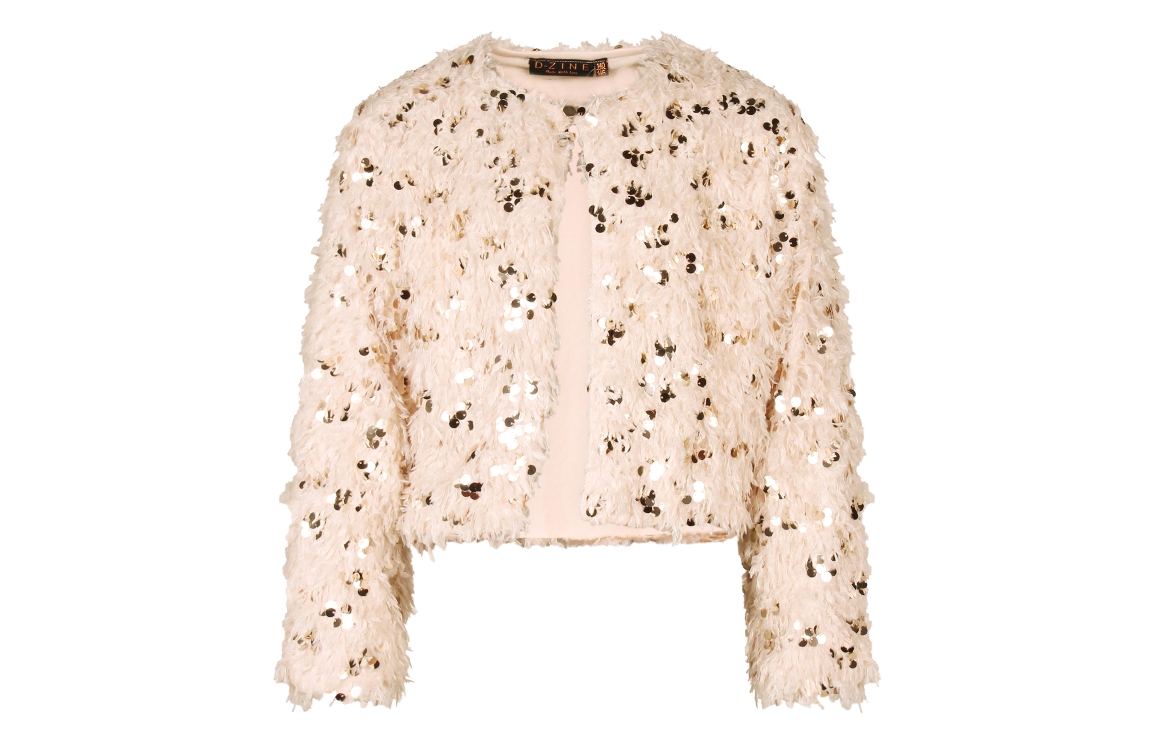 Omschrijving Pol. featherlook/sequins