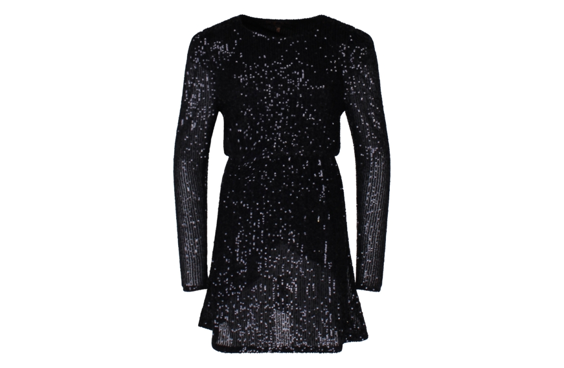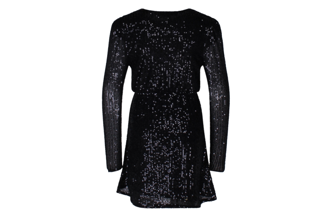 Omschrijving Pol/el pailetten, ronde hals, pofmouw